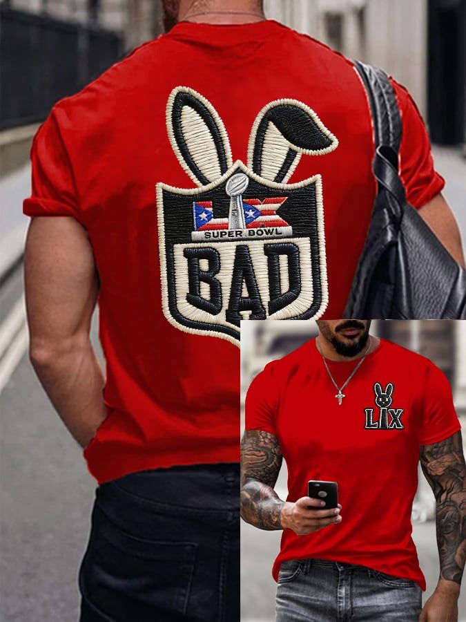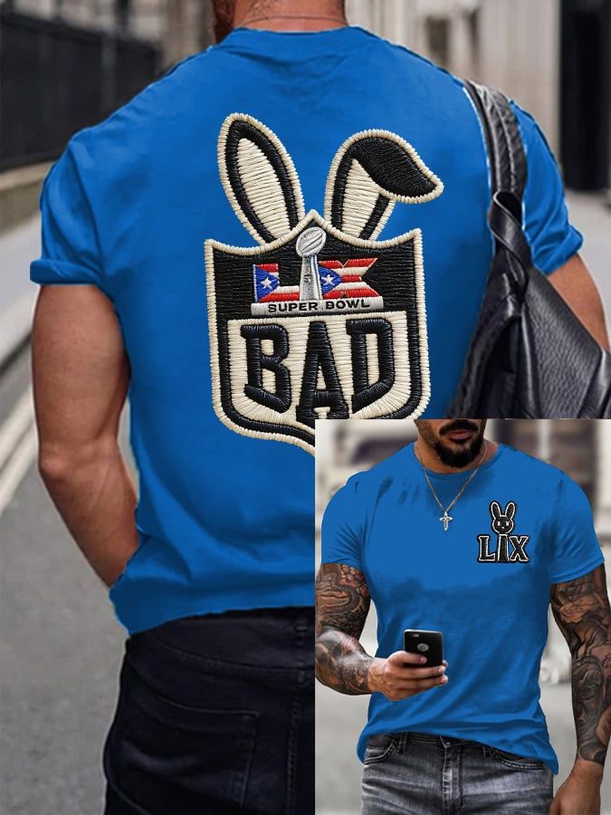 🔥🔥2nd 50% Off 🔥🔥Men's Bunny Football Music Lover Print Casual T-Shirt