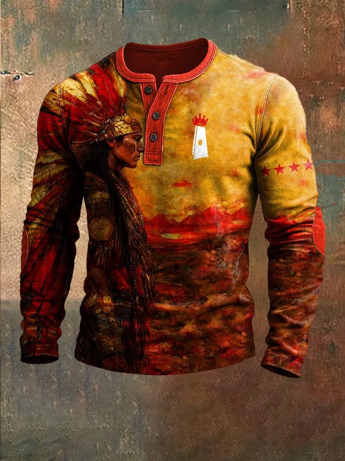 Men's Casual Rugby Print Henley