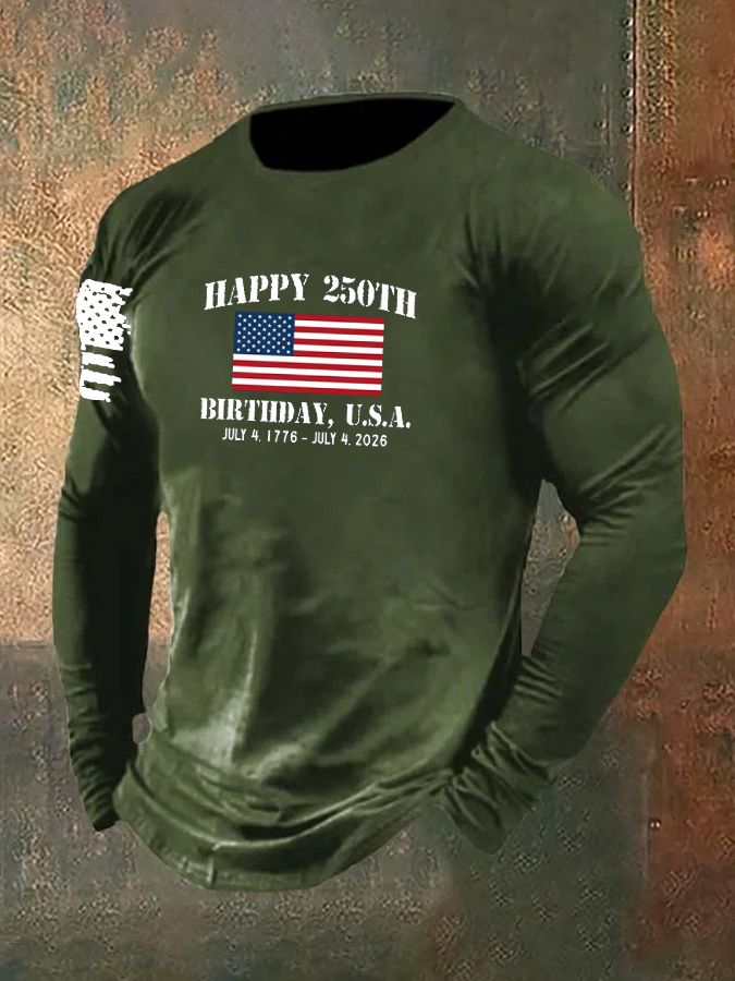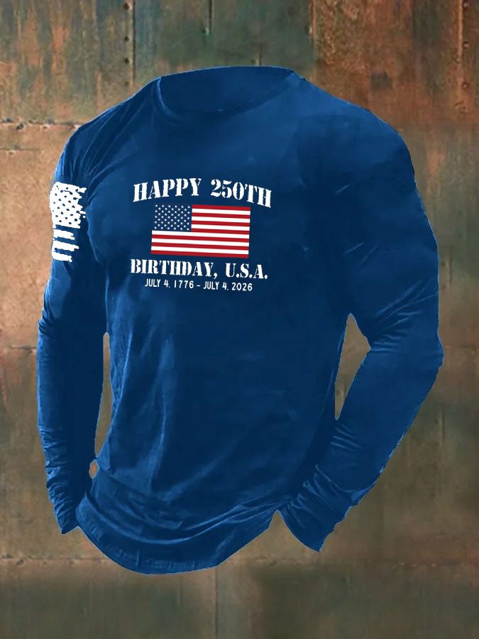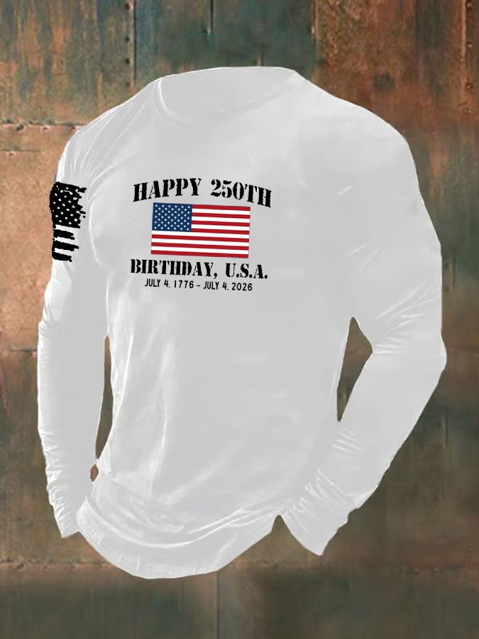 Men's Happy 250th Birthady U.S.A. Pattern Long Sleeve 100% Cotton T-Shirt