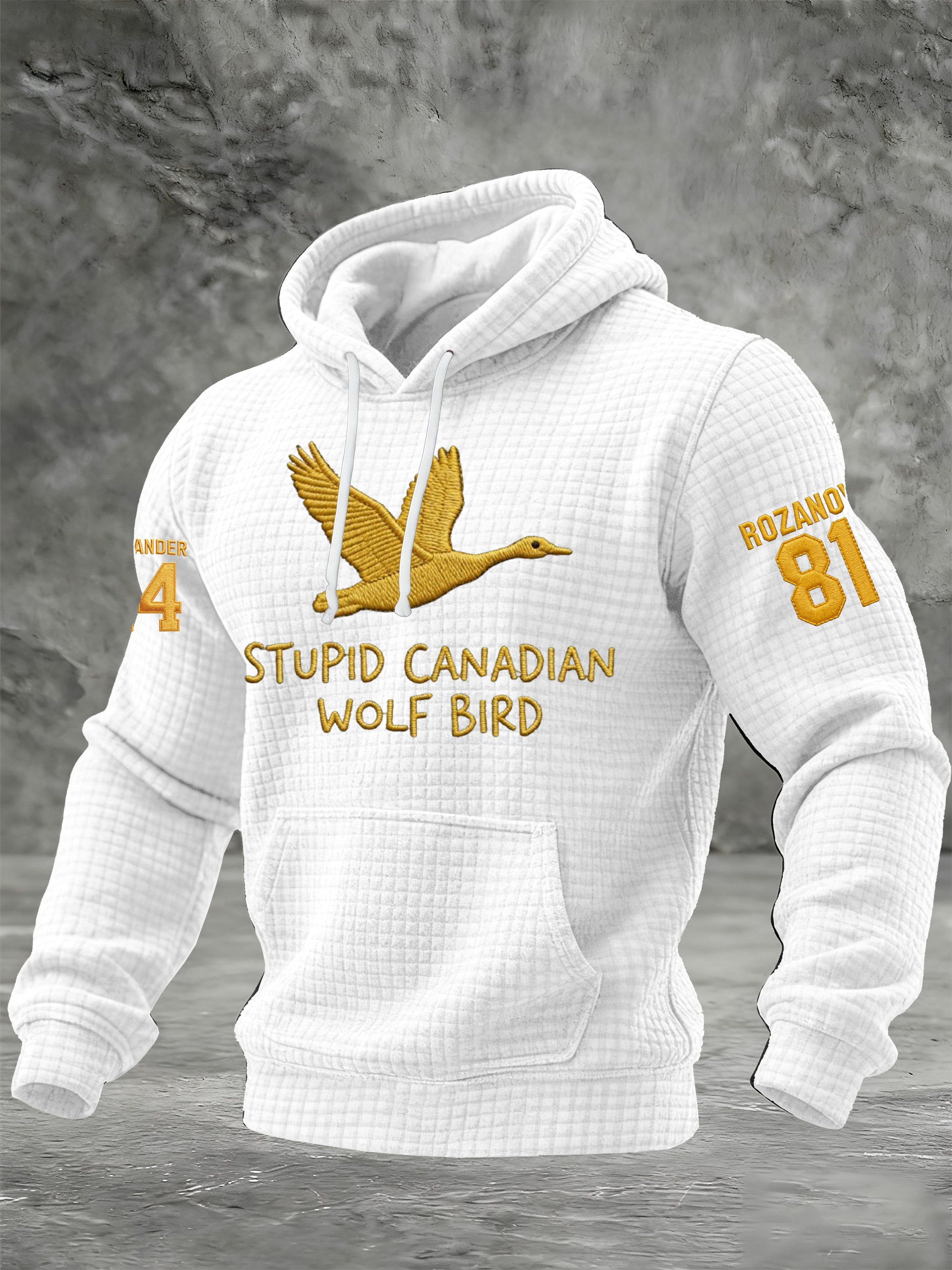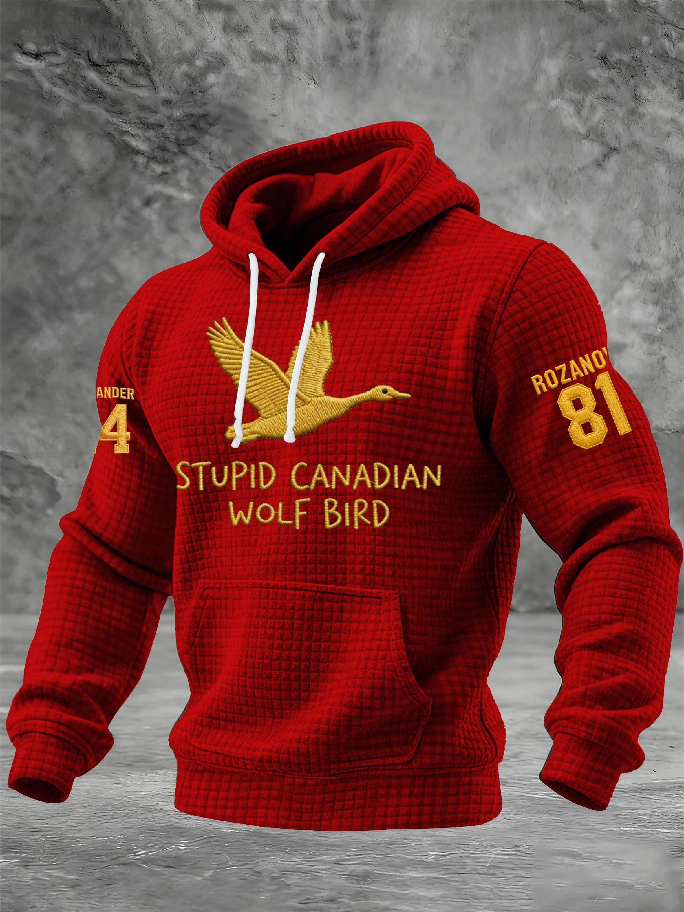 Men's Stupid Canadian wolf bird Print Long-Sleeved T-Shirt