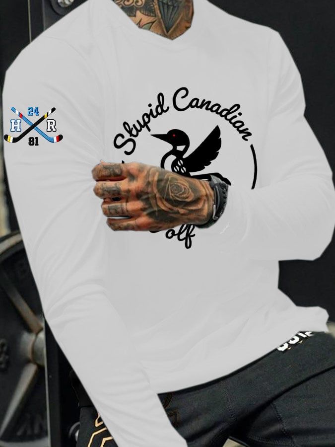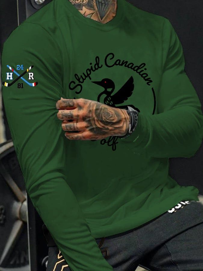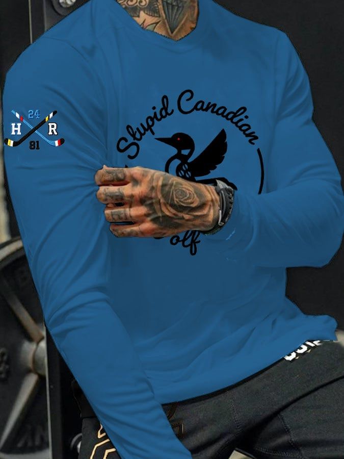 Men's Stupid Canadian wolf bird Print Long-Sleeved T-Shirt