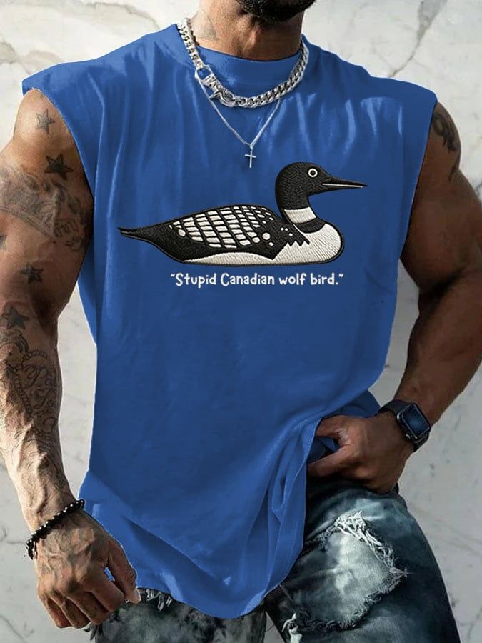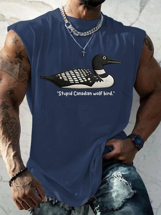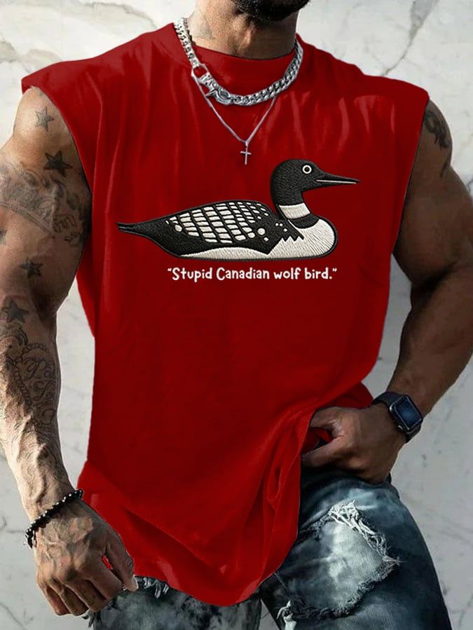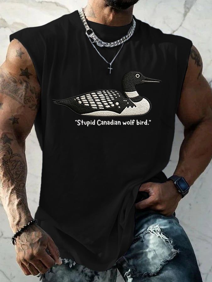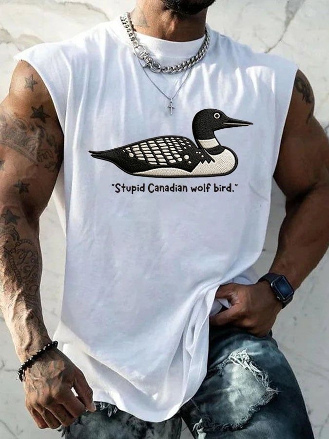 Men's Stupid Canadian Wolf Bird Print T-Shirt