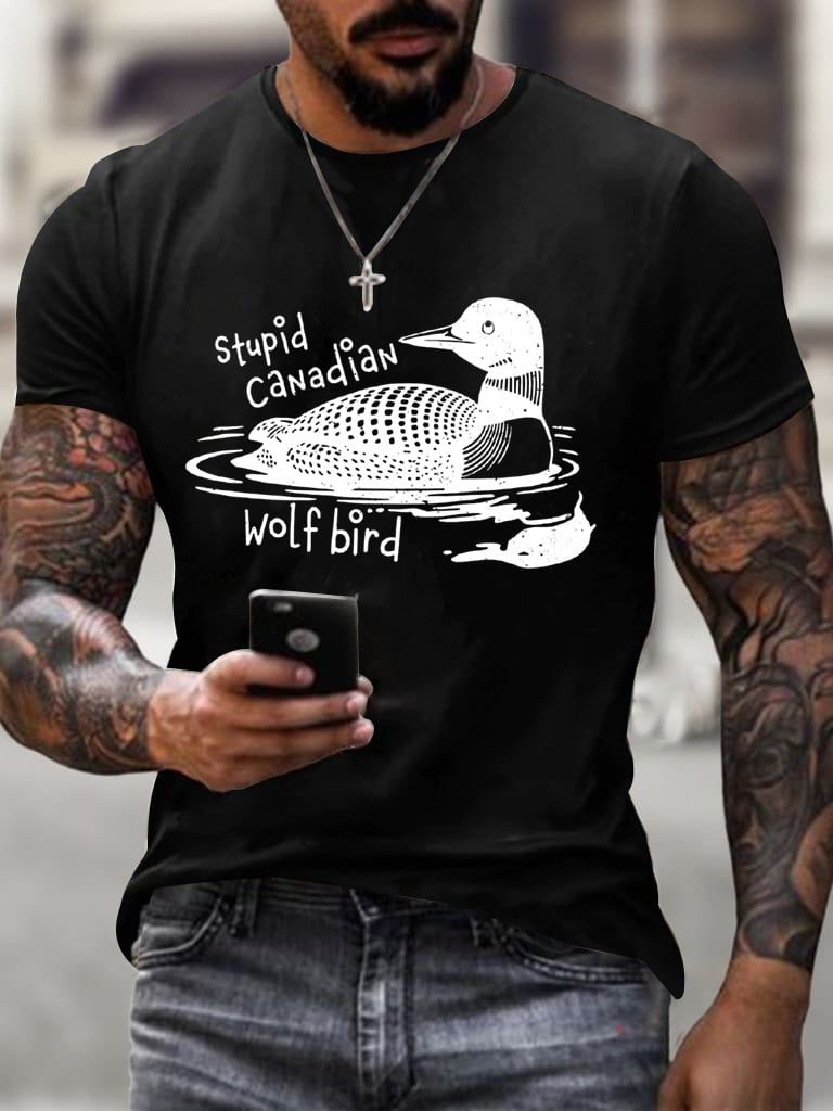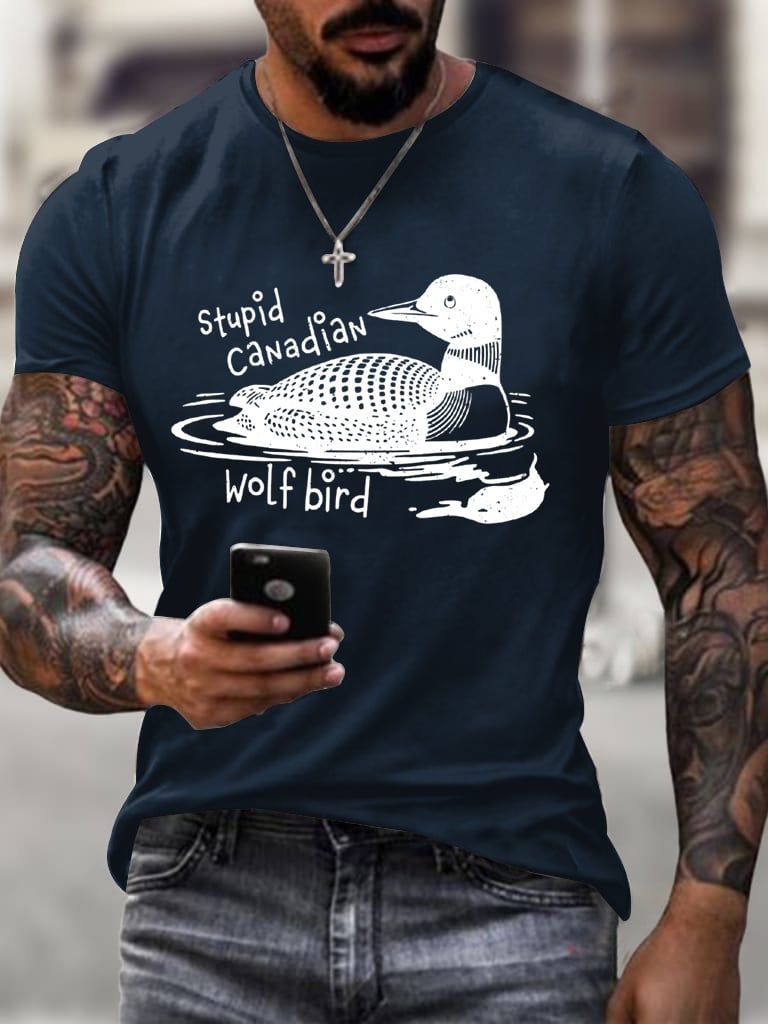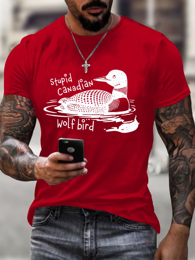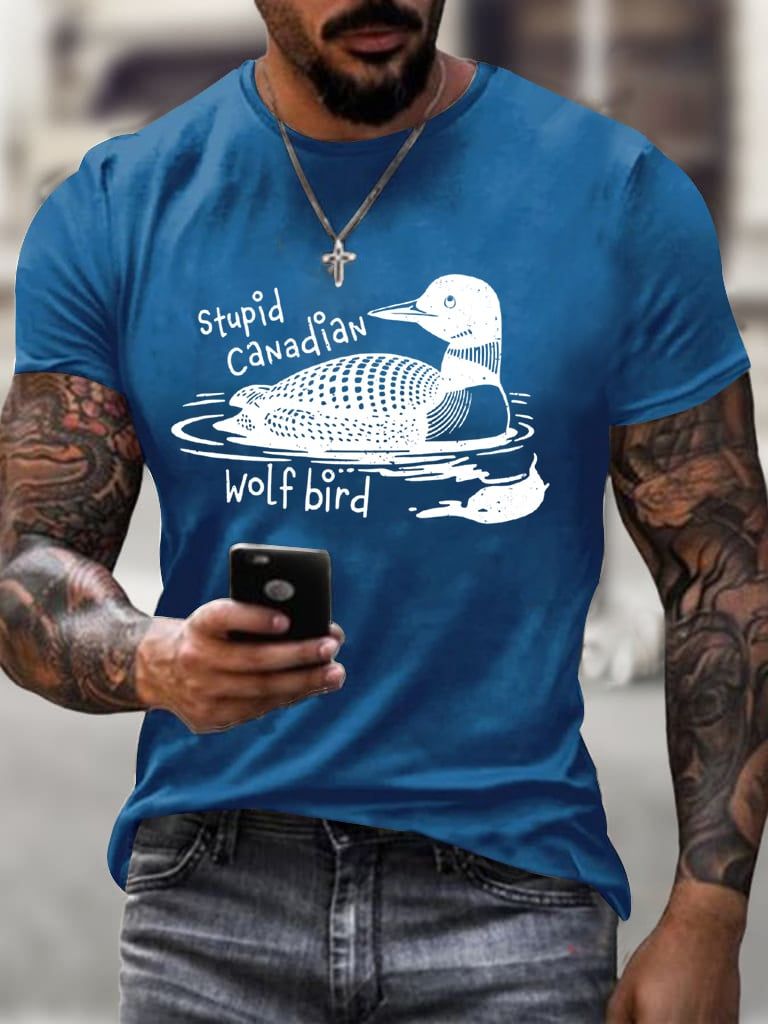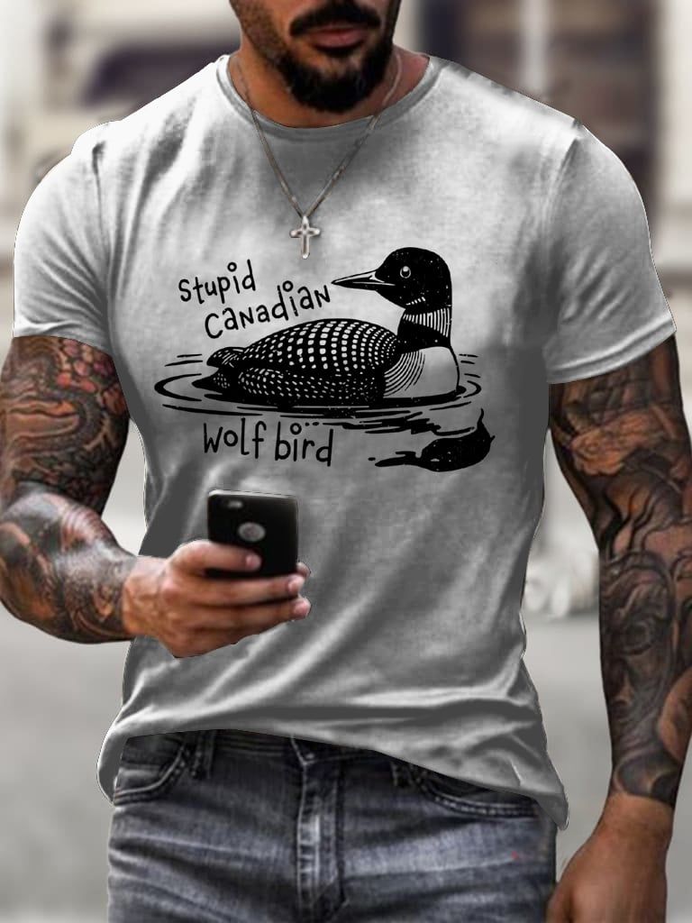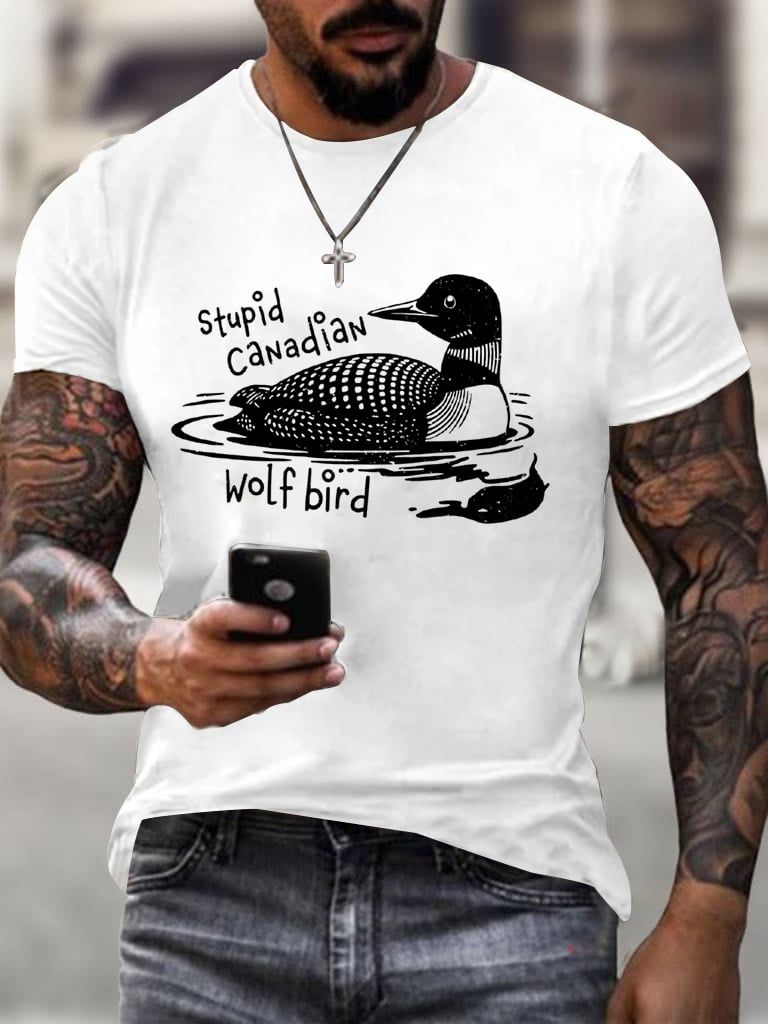 Men's Stupid Canadian Wolf Bird Print T-Shirt