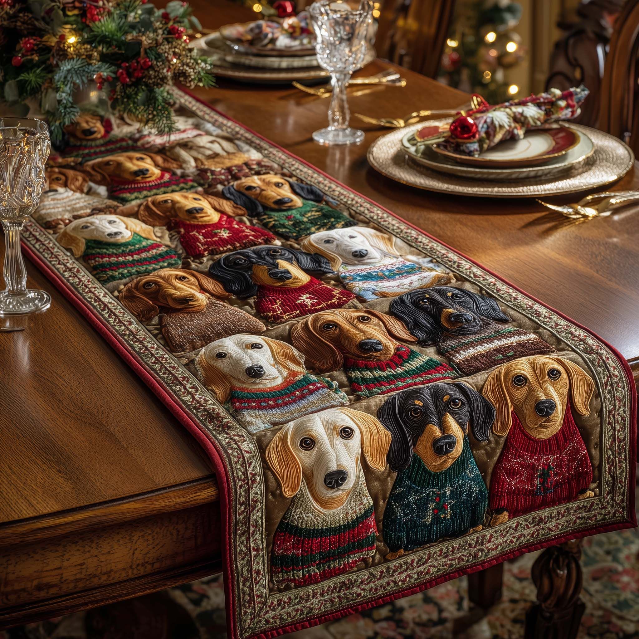 Merry Dachshund Charm Quilted Table Runner GFTOTP15404