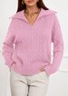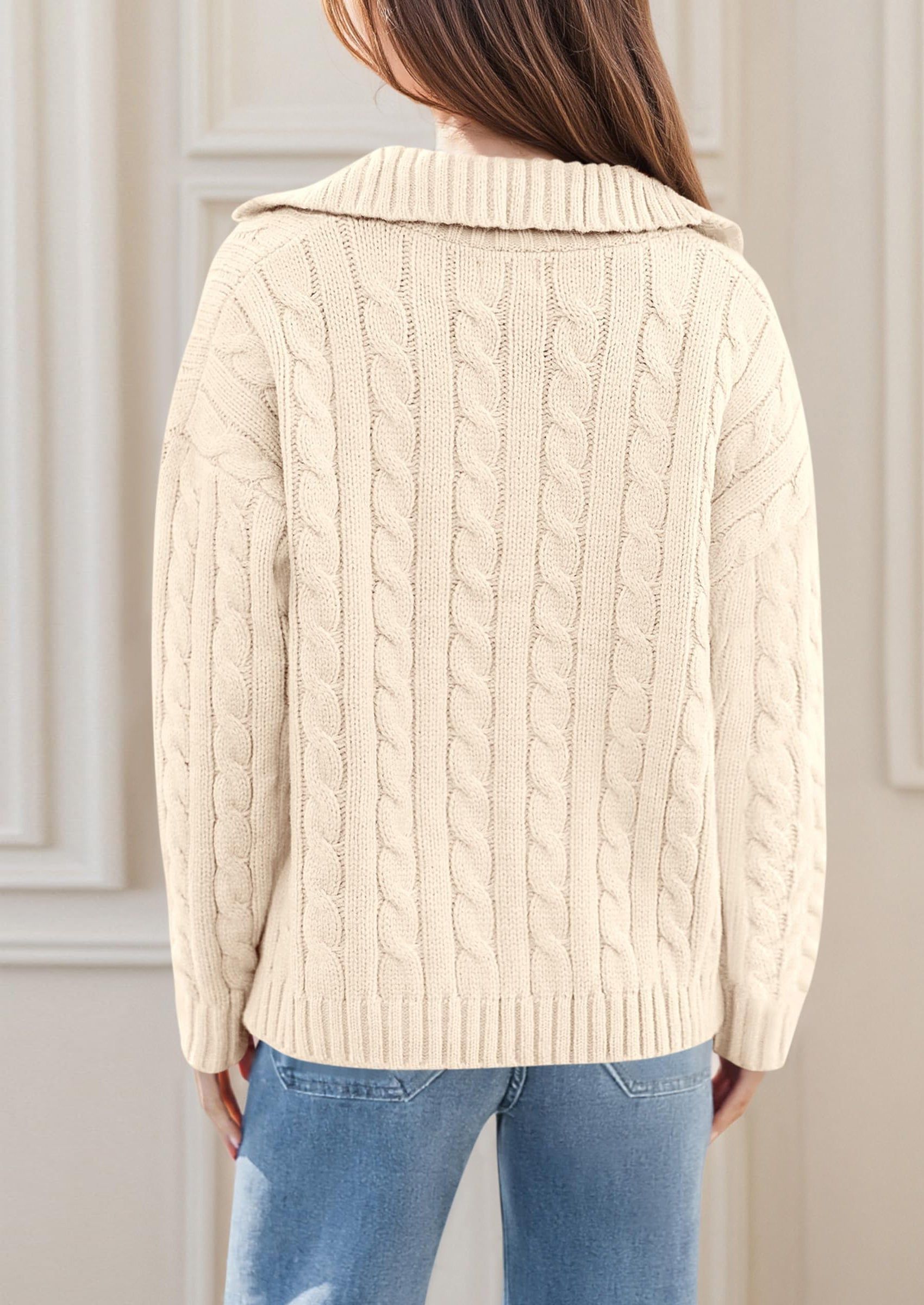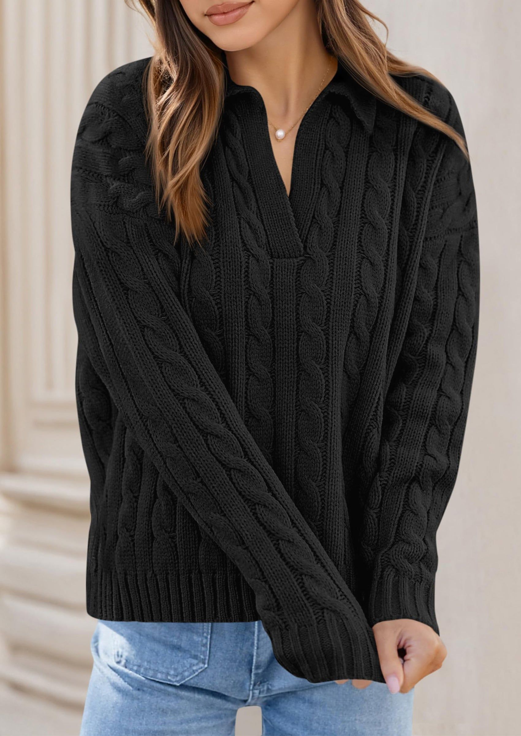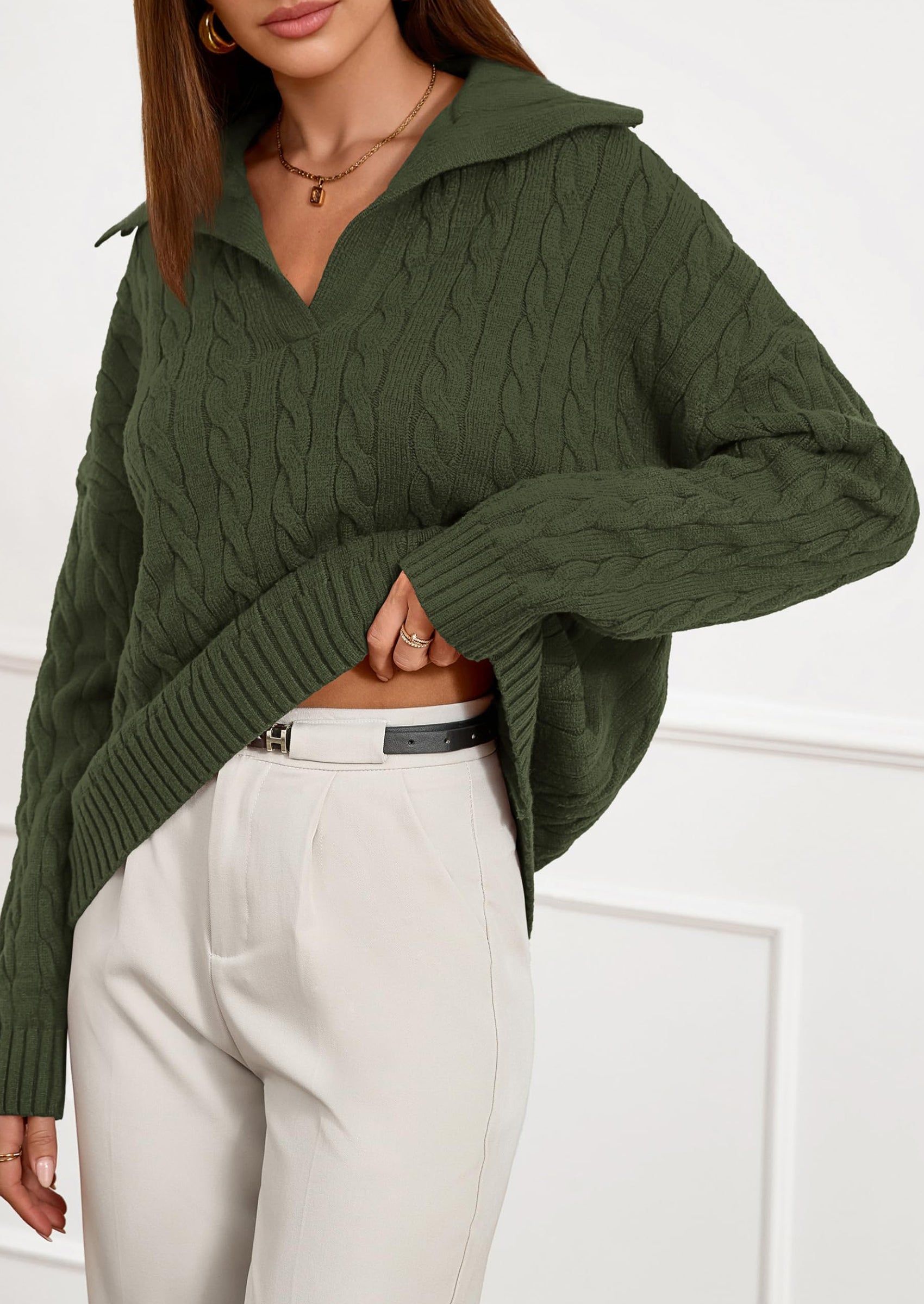 PRETTYGARDEN Fall Cable Knit Oversized Sweaters for Women Polo V Neck Long Sleeve Casual Chunky Sweater Pullover Tops