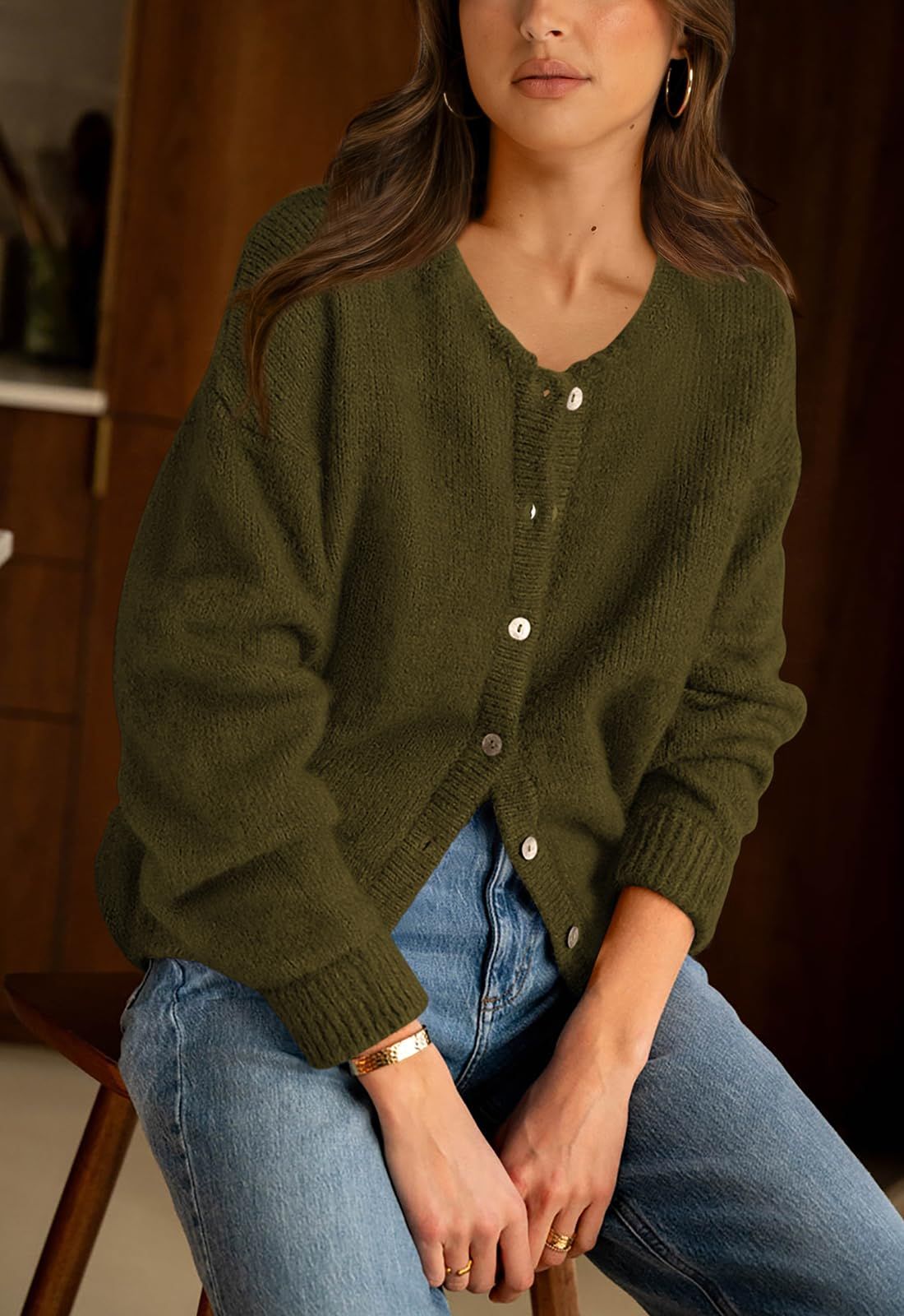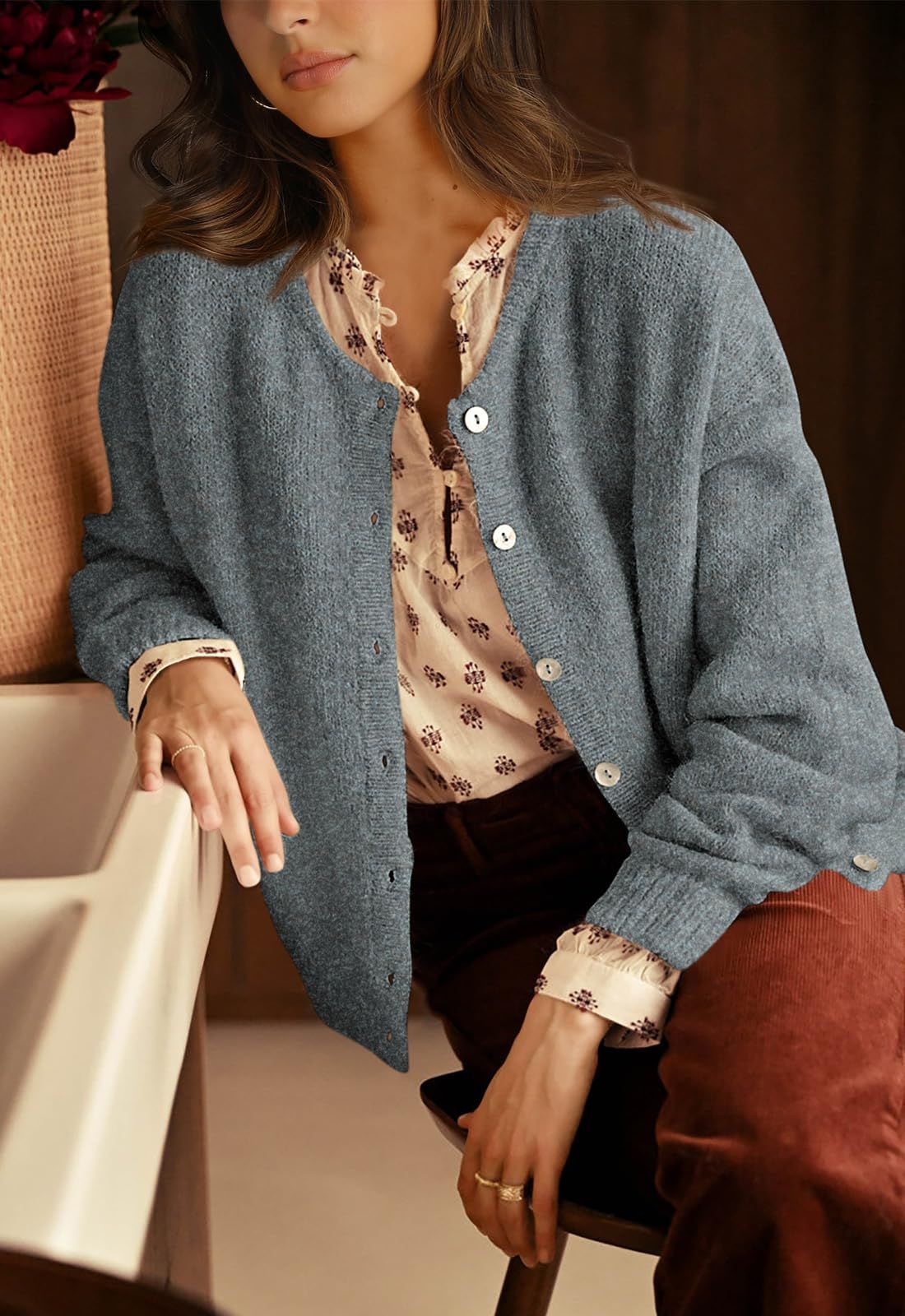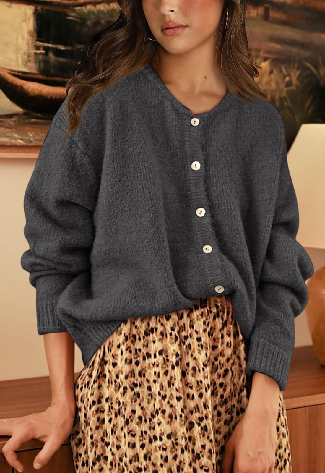 PRETTYGARDEN Long Sleeve Crewneck Button Down Womens Sweaters Fall Open Front Chunky Cardigan Sweaters for Women