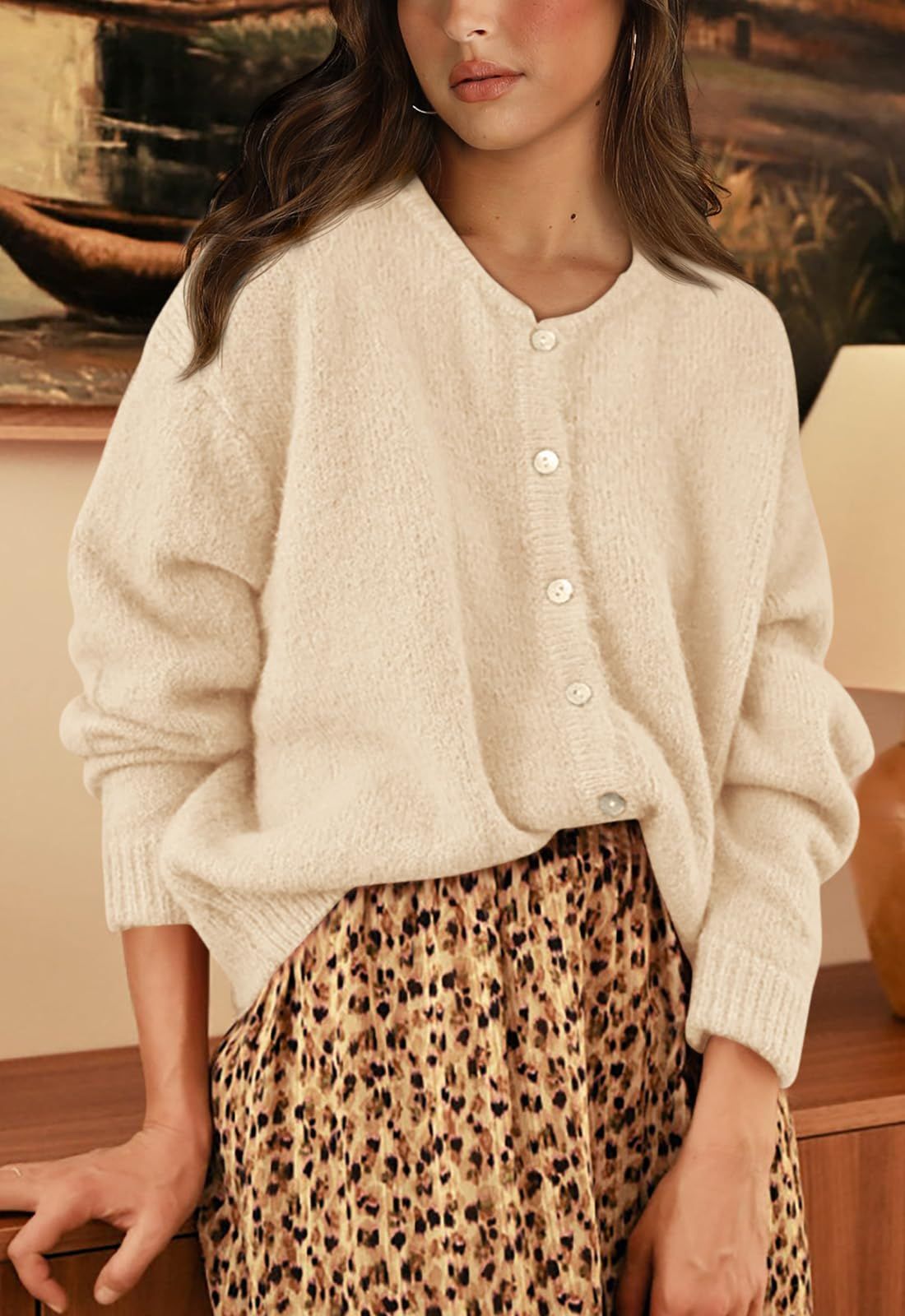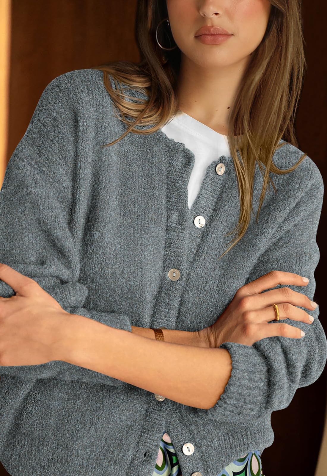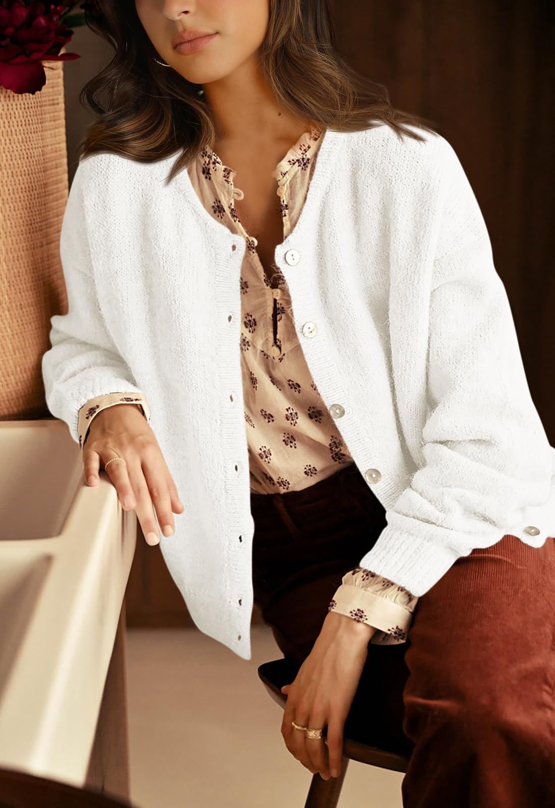 PRETTYGARDEN Long Sleeve Crewneck Button Down Womens Sweaters Fall Open Front Chunky Cardigan Sweaters for Women