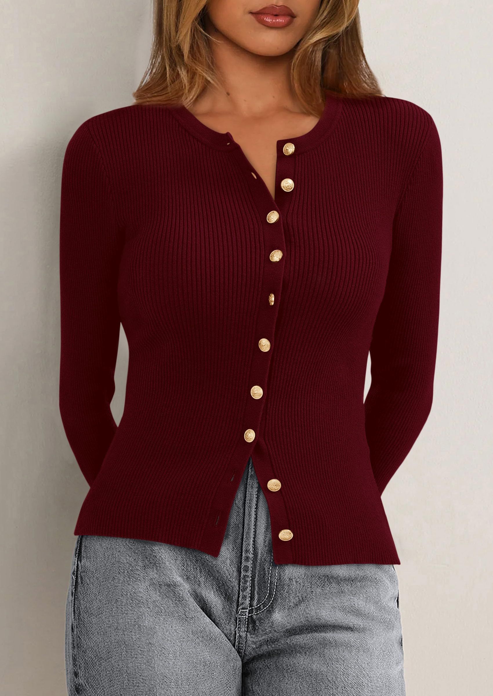 PRETTYGARDEN Womens Fall Cardigan Sweaters Lightweight Long Sleeve Button up Ribbed Knit Tops Winter Fashion Clothes