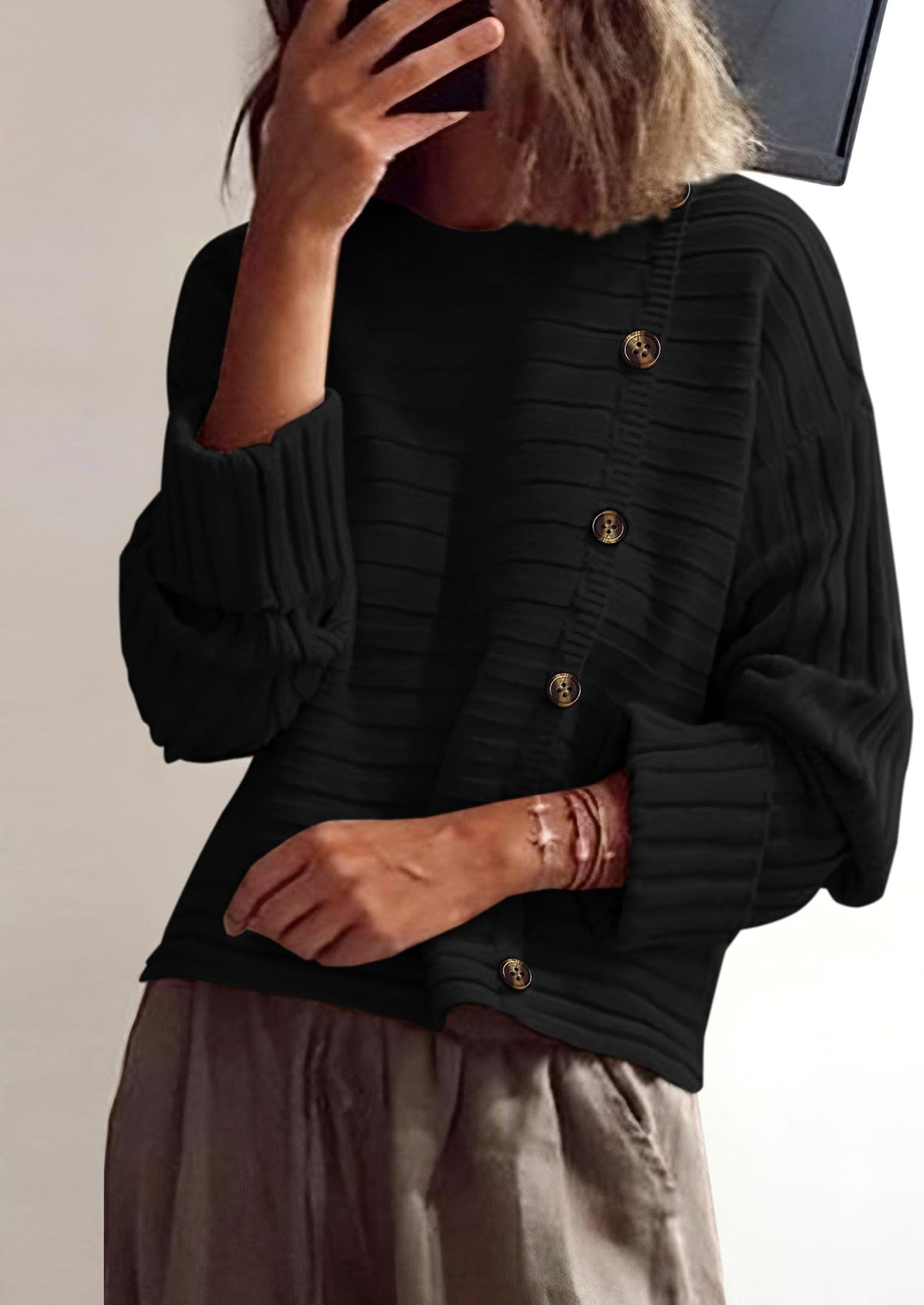 PRETTYGARDEN Womens Sweaters Fall Casual Long Sleeve Crewneck Button Loose Winter Knit Pullover Sweater Tops