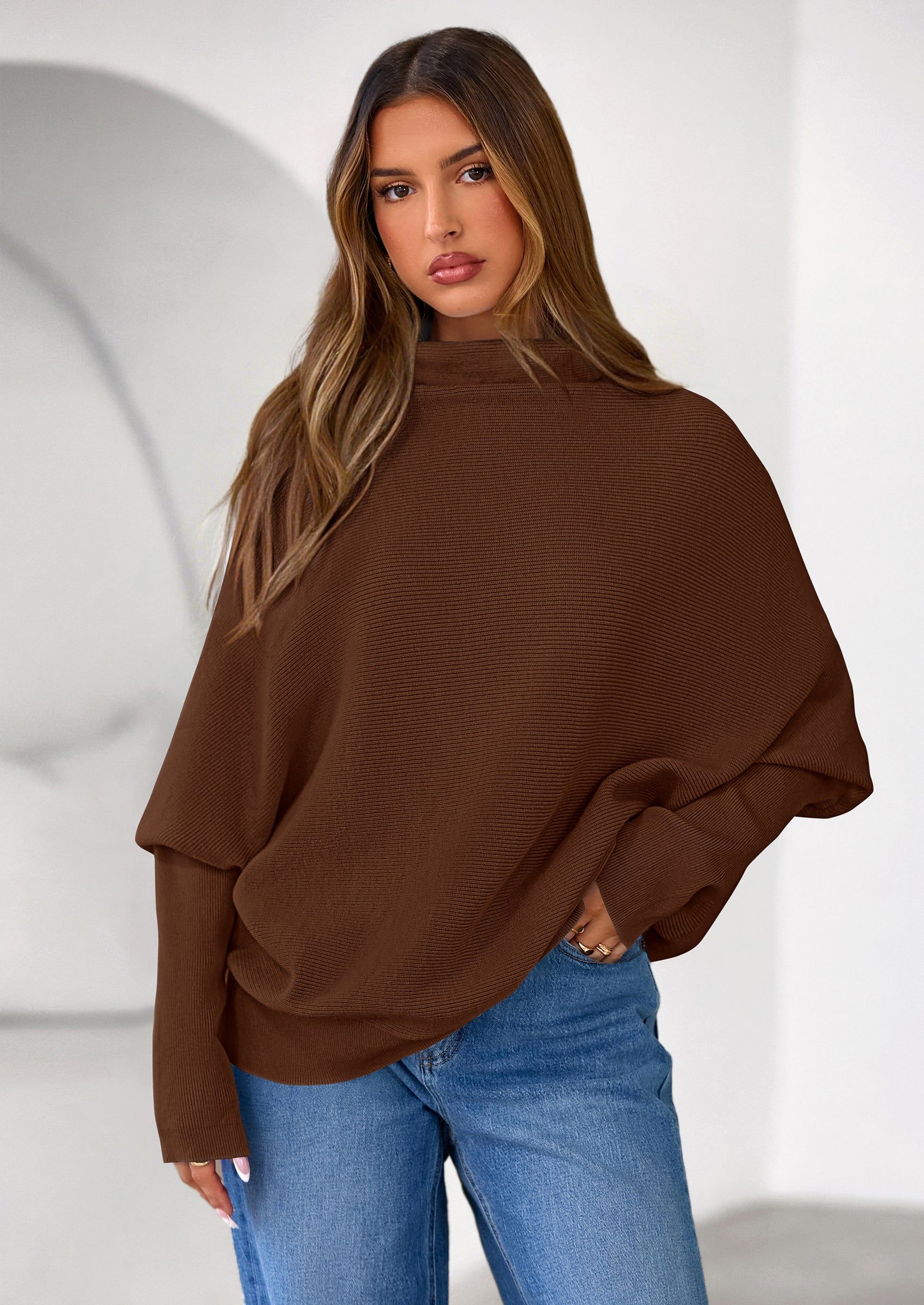 PRETTYGARDEN Womens Sweaters Fall Fashion Casual Loose Turtleneck Batwing Long Sleeve Knit Sweater Pullover Tops