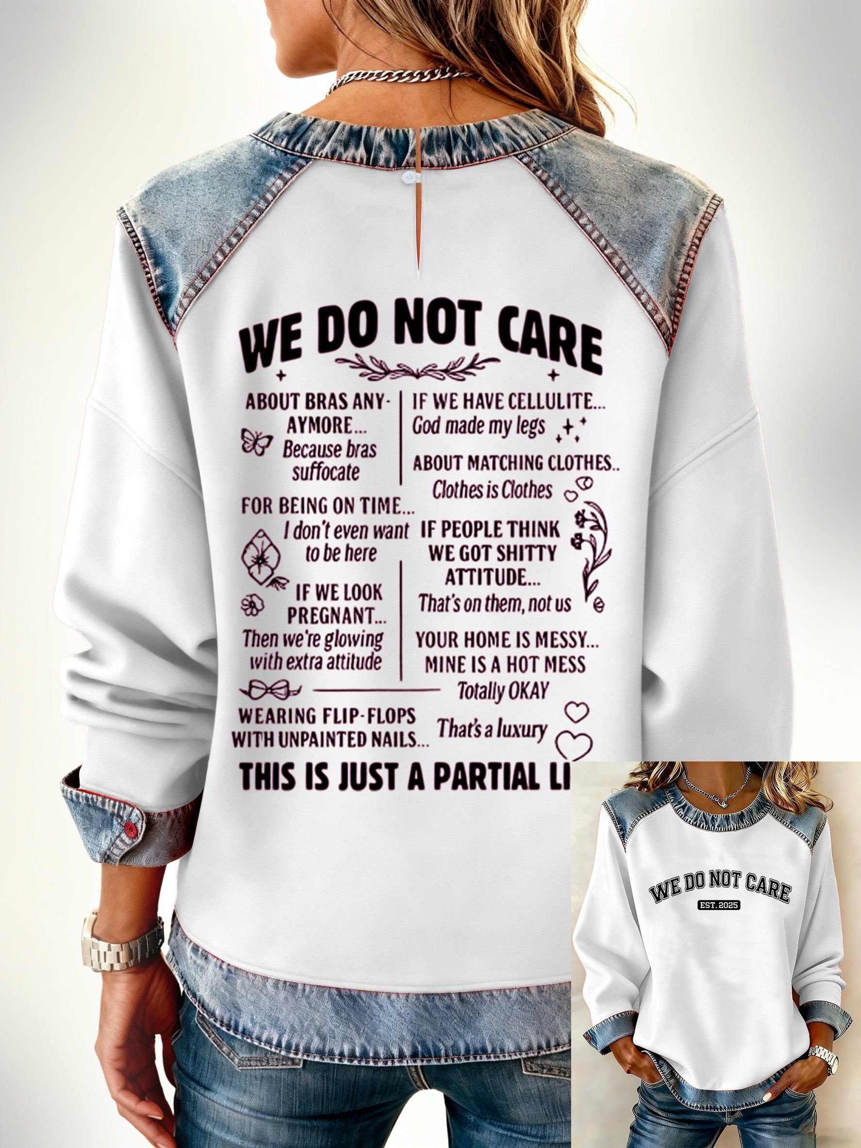 V-Neck Retro Funny We Simply Do Not Care Menopause Perimenopause Print T-Shirt