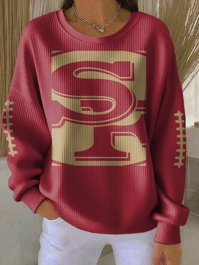Rugby Team Casual Casual Color Women's Printed Casual Knit Top