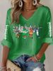 Rugby team color casual Women's Football Print V Neck T-shirt