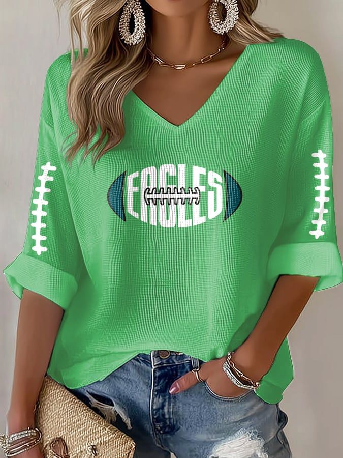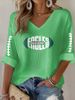 Rugby team color casual Women's Football Print V Neck T-shirt