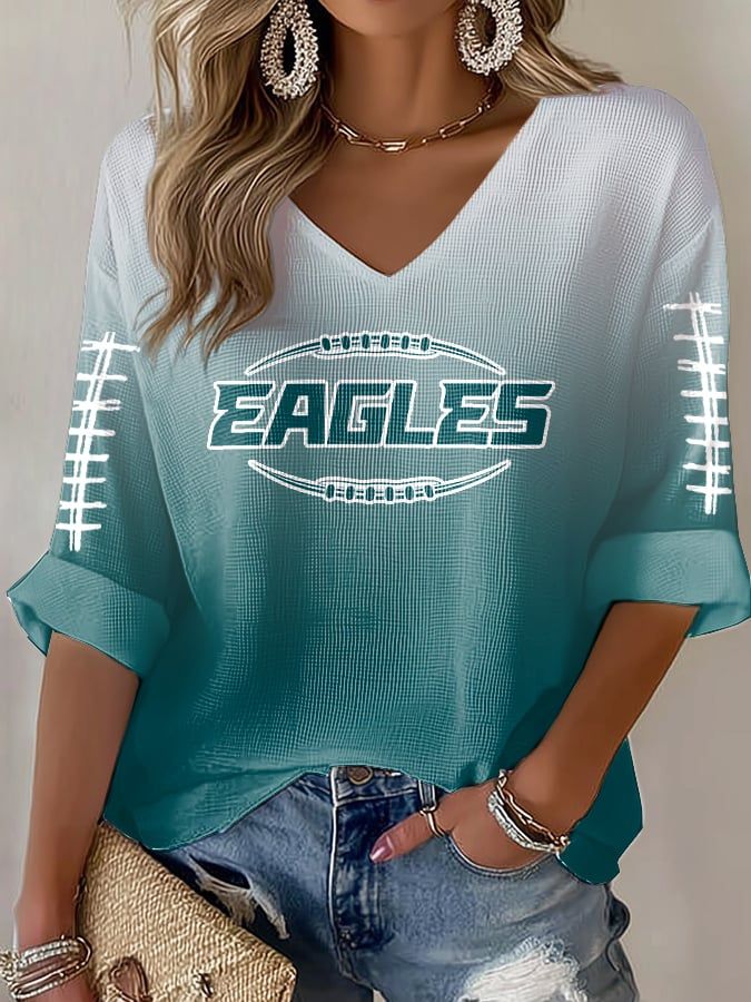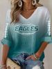 Rugby team color casual Women's Football Print V Neck T-shirt