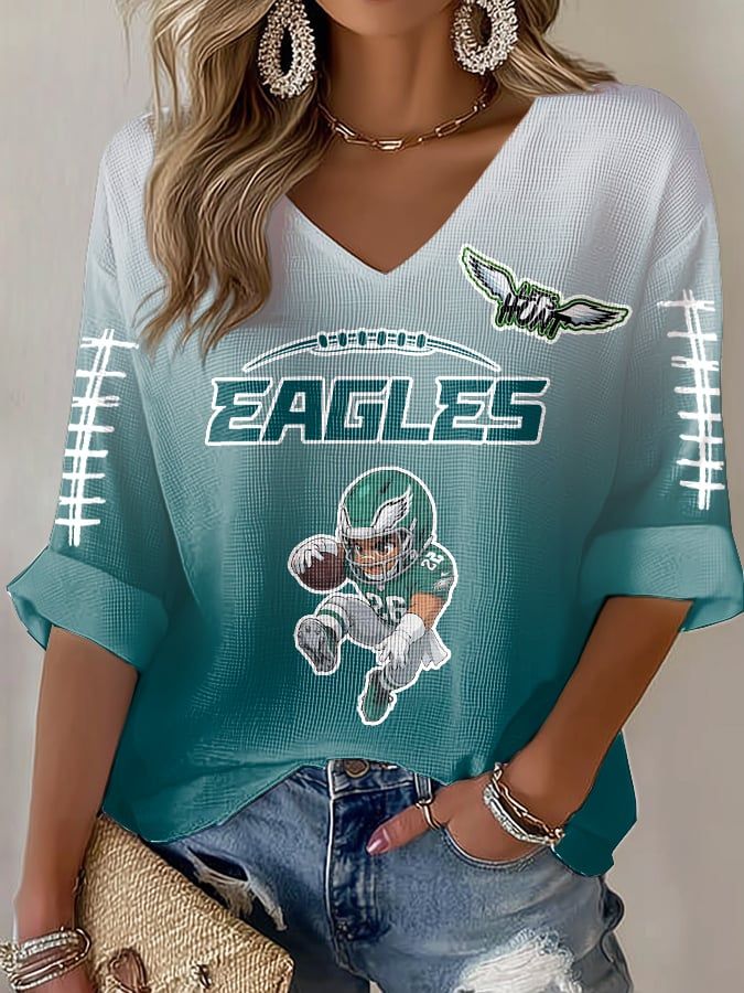 Rugby team color casual Women's Football Print V Neck T-shirt