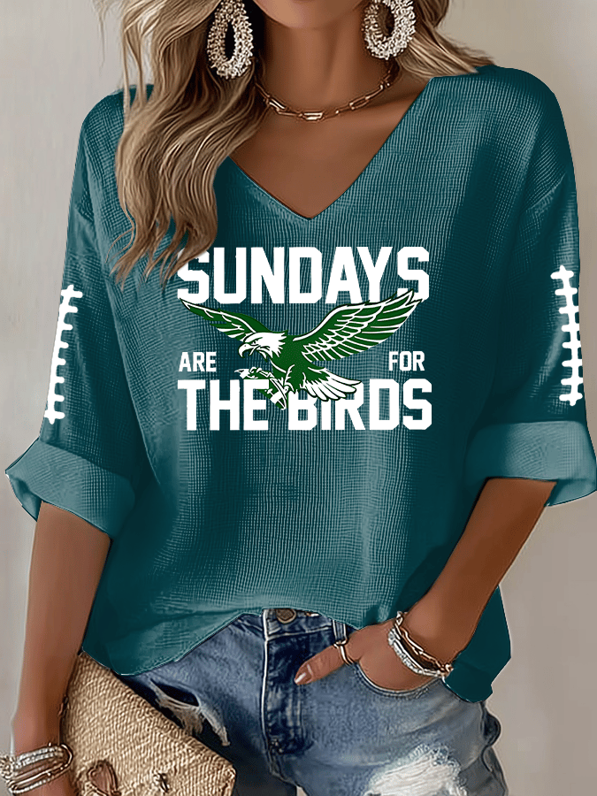 Rugby team color casual Women's Football Print V Neck T-shirt