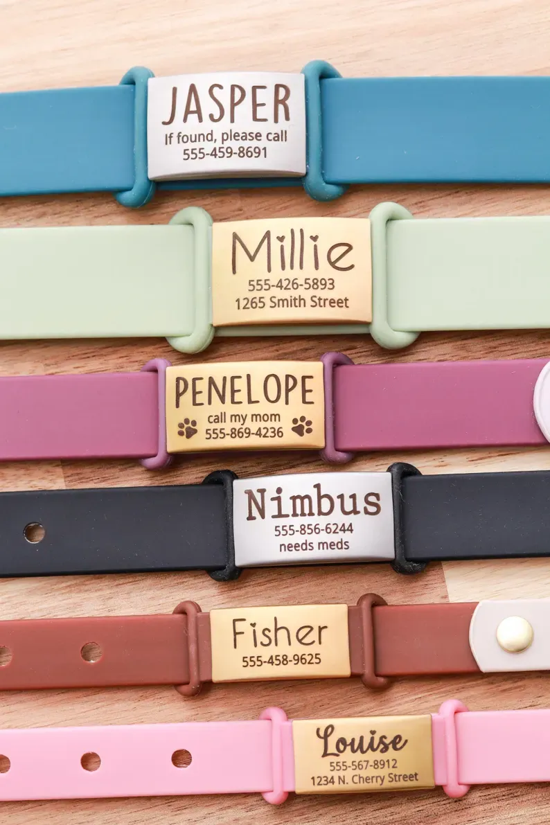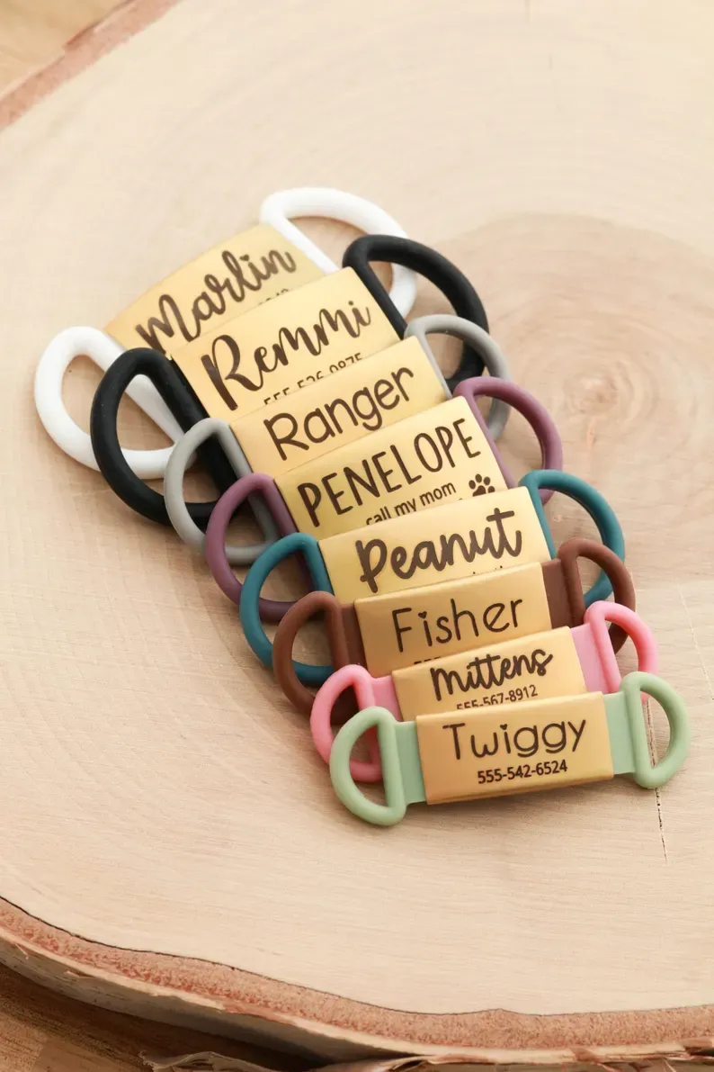 Silicone Pet Tag, Silent ID Tag for Dogs, Silent Pet Tag for Cats, Slide On Personalized Pet ID Tag with Custom Engraving Dog Tag, No Noise