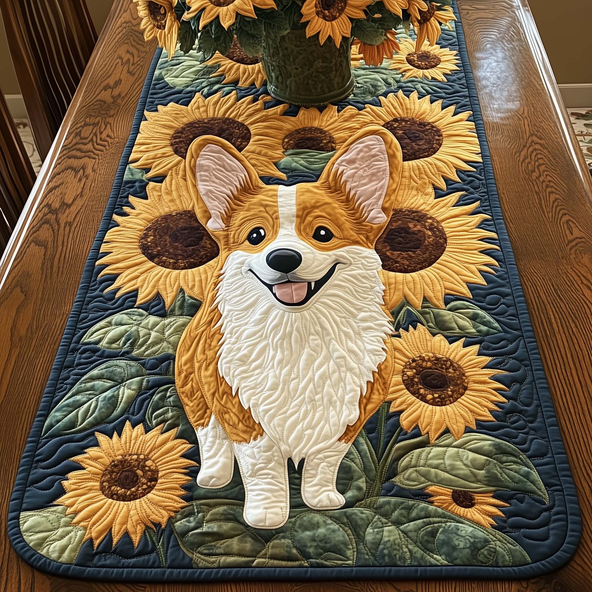 Sunflower Corgi Quilted Table Runner GFTOQA803