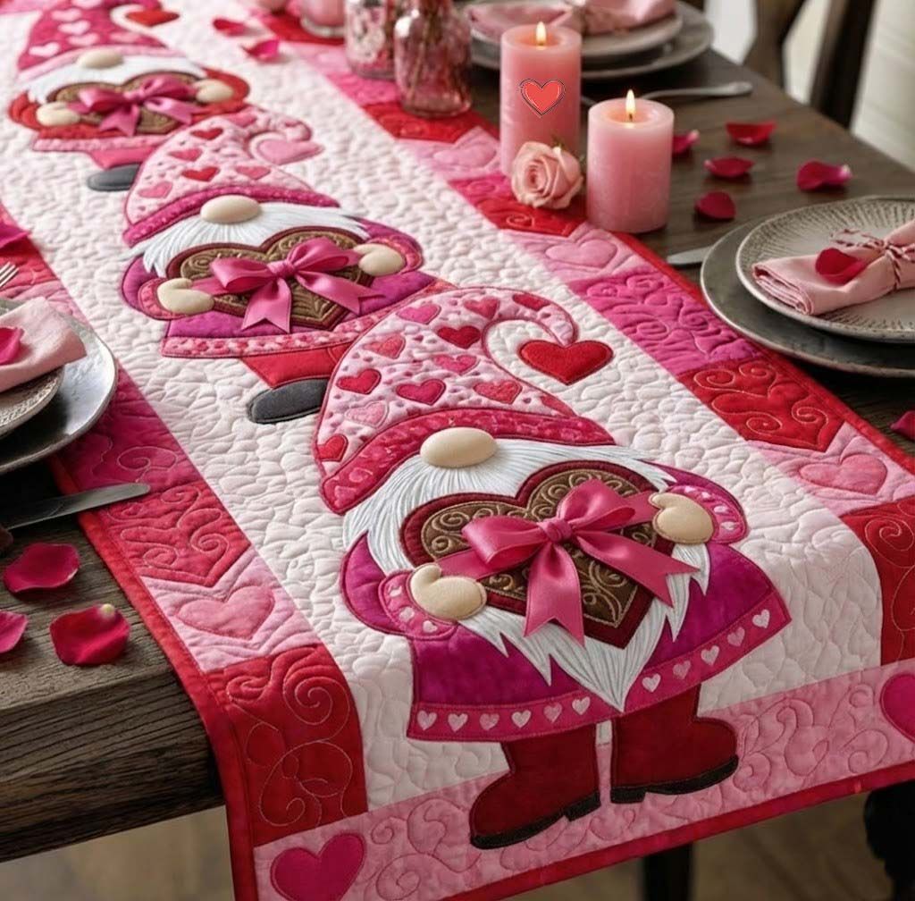 Sweetheart Gnomeville Quilted Table Runner GFTOTG2427