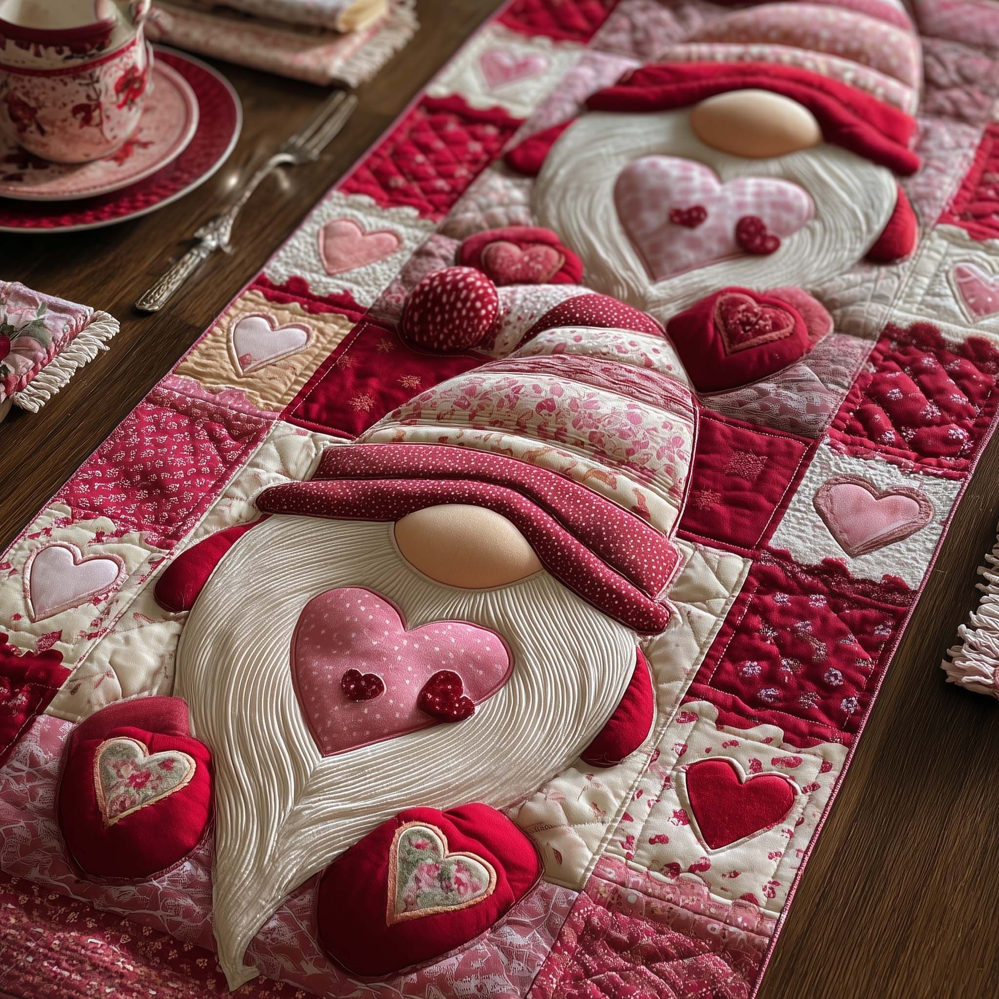 Sweetheart Gnomeville Quilted Table Runner GFTOTG2429