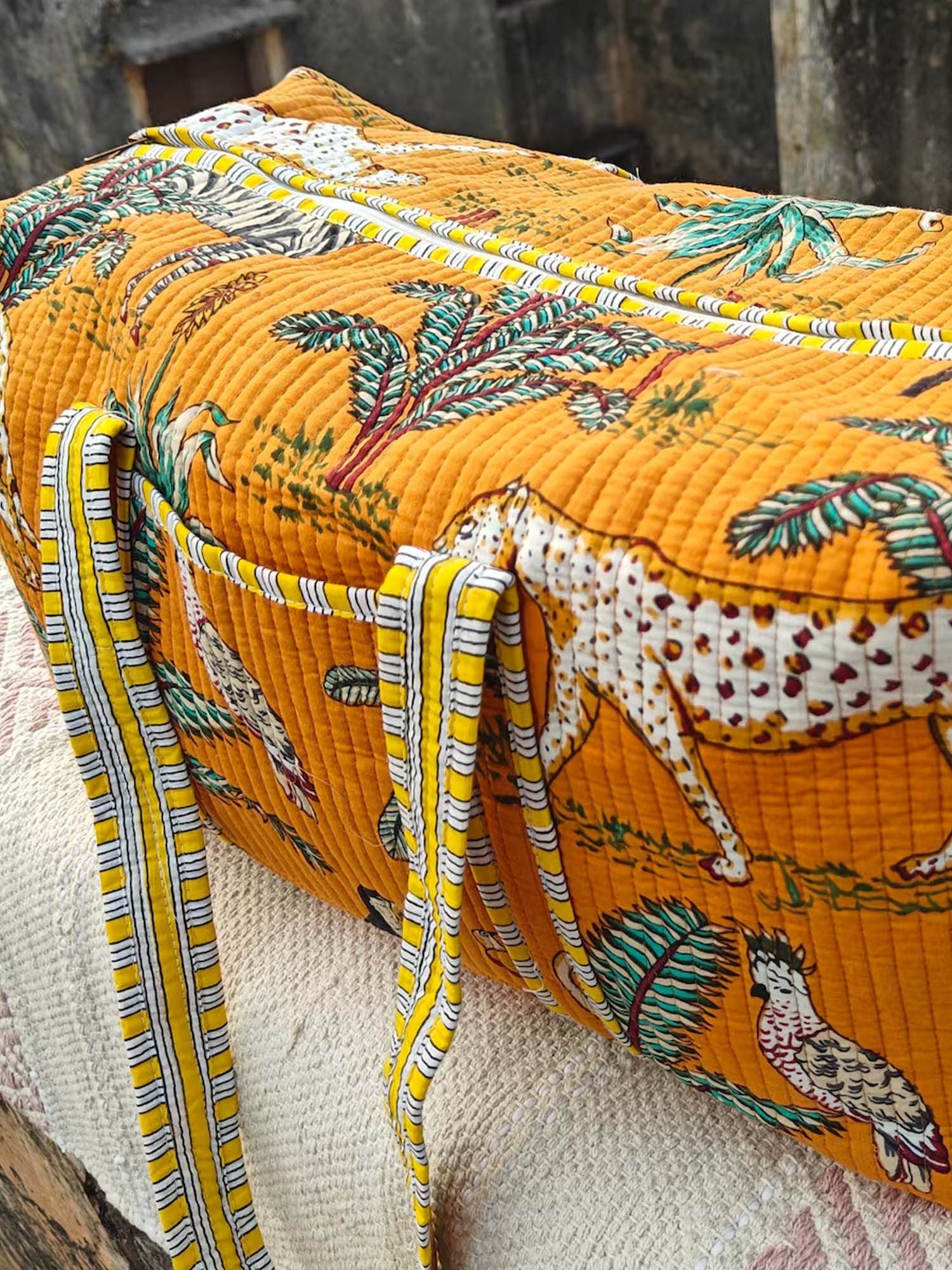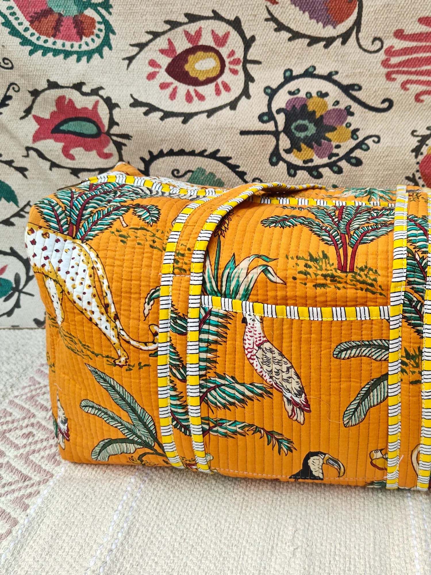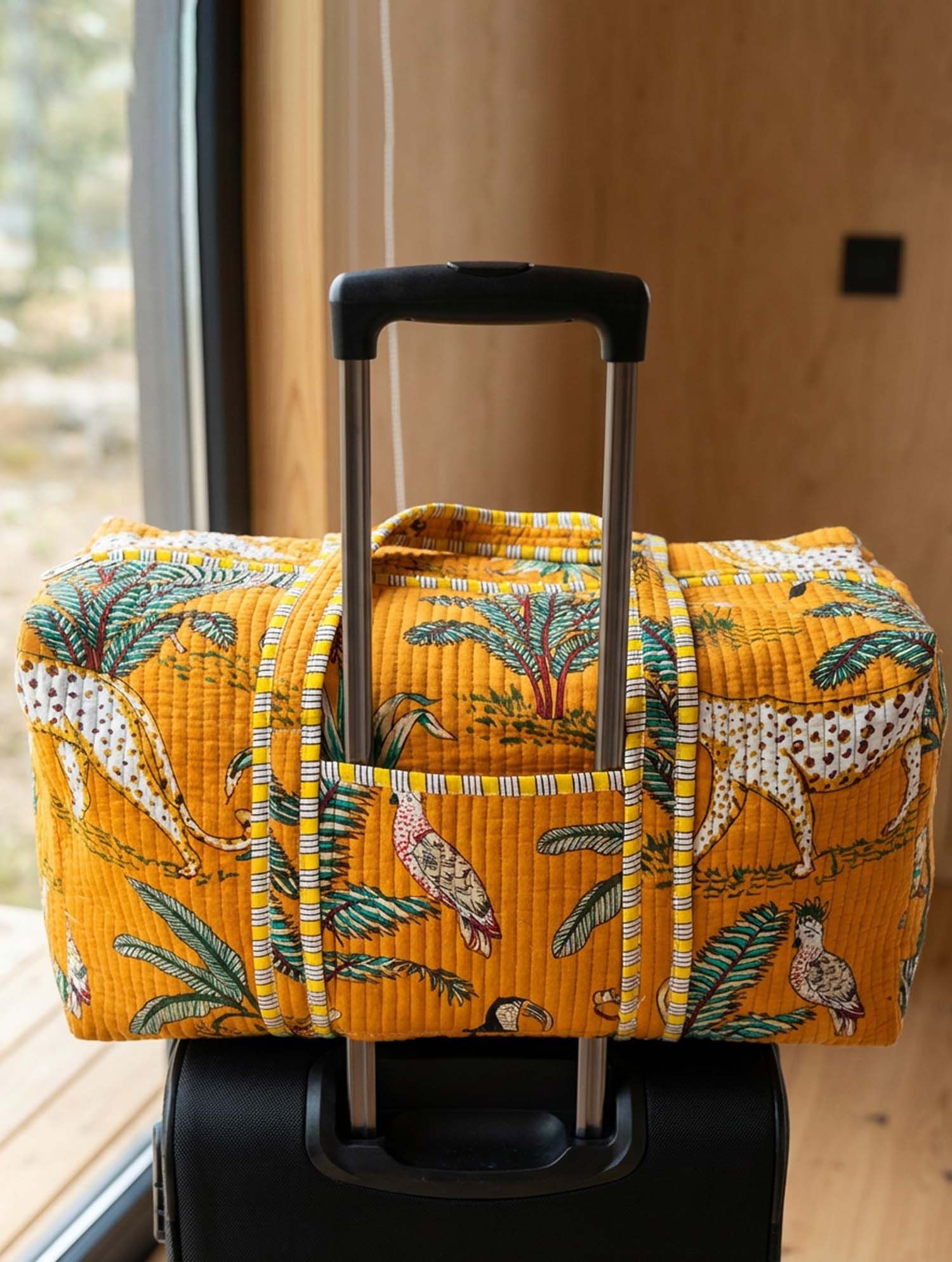 Tropical Leopards And Plants Quilted Duffle Bag