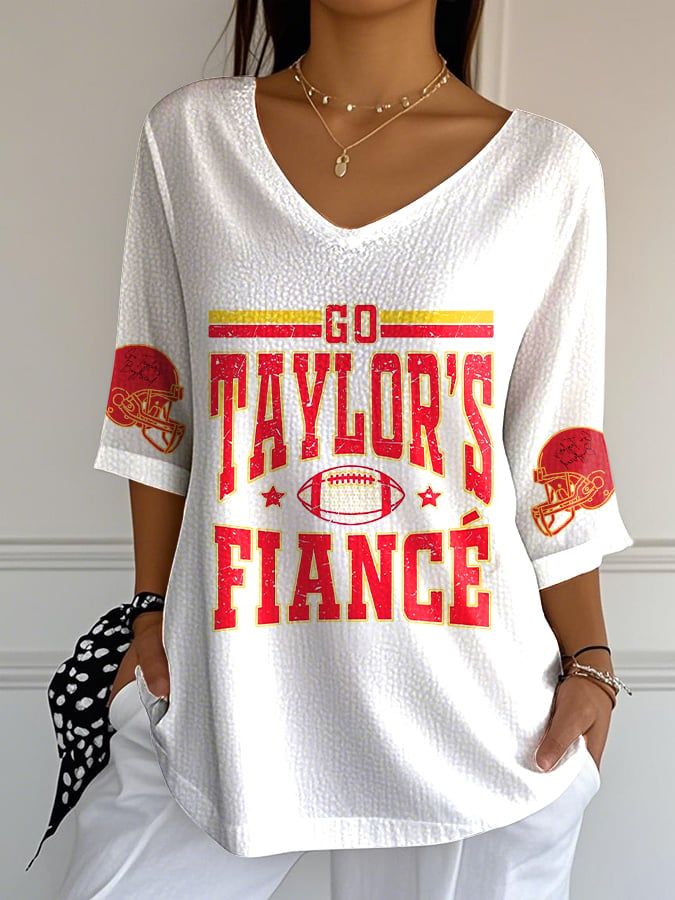 Rugby team color casual Women's Football Print V Neck T-shirt