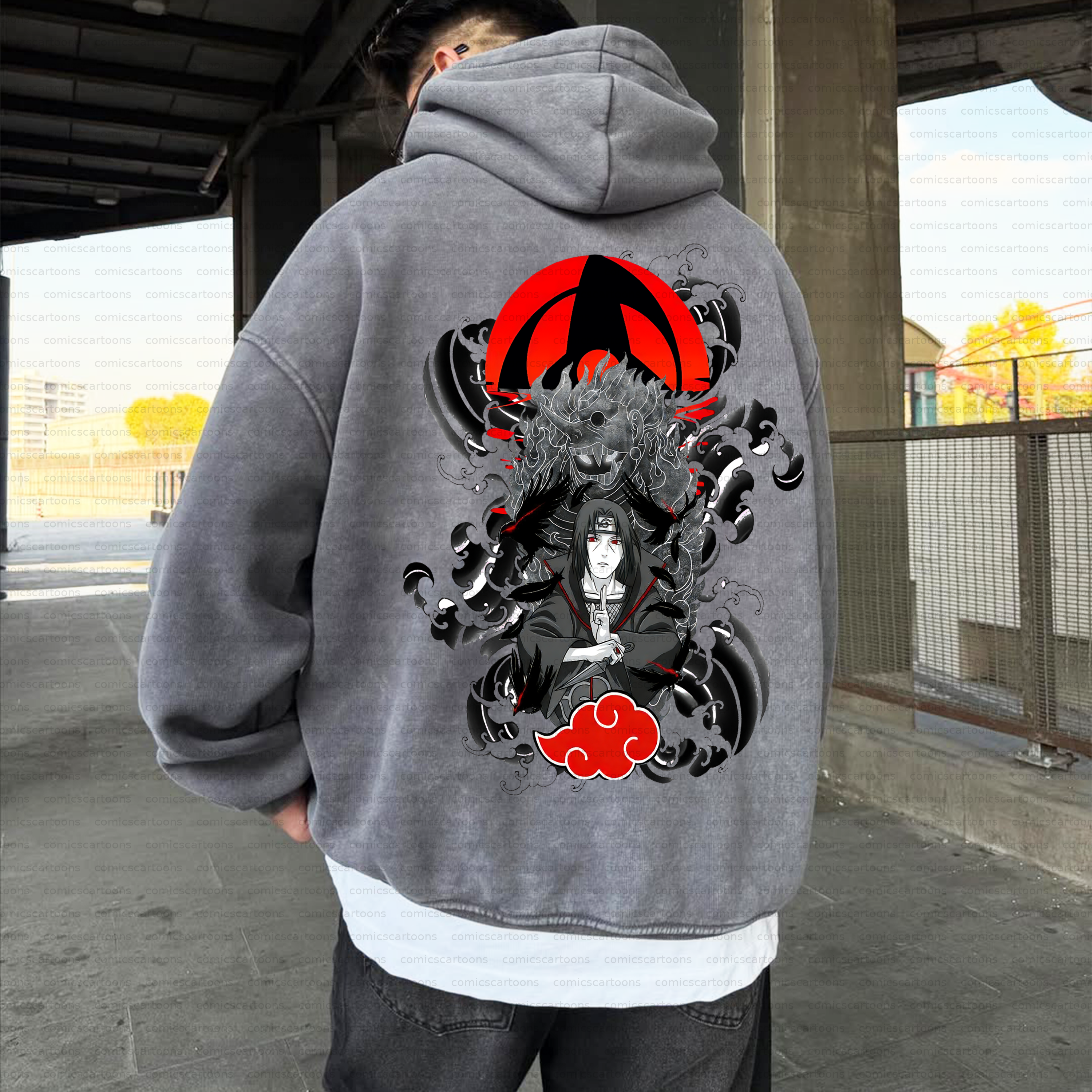 Unisex Anime Graphic Water wash Streetwear Vintage Hoodie