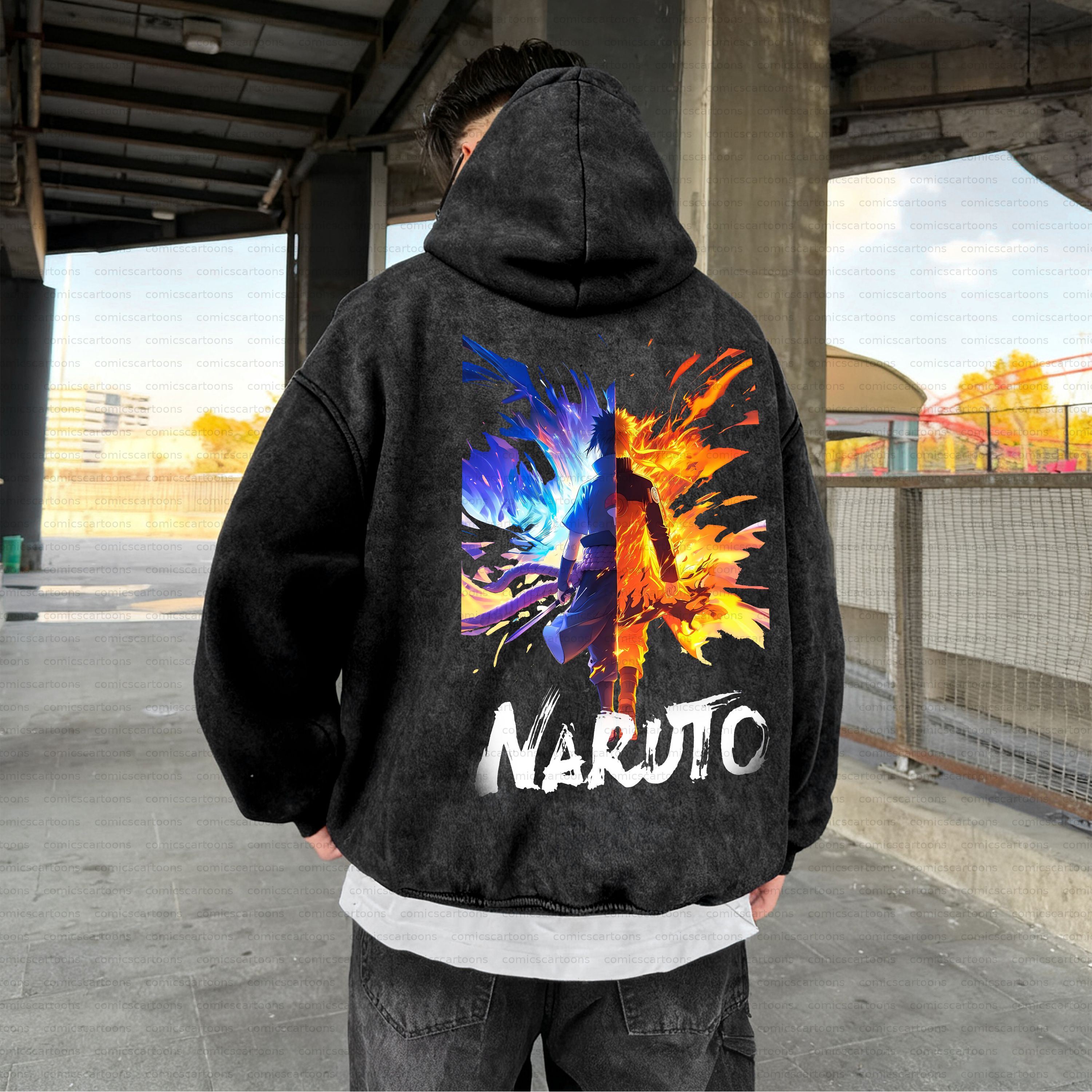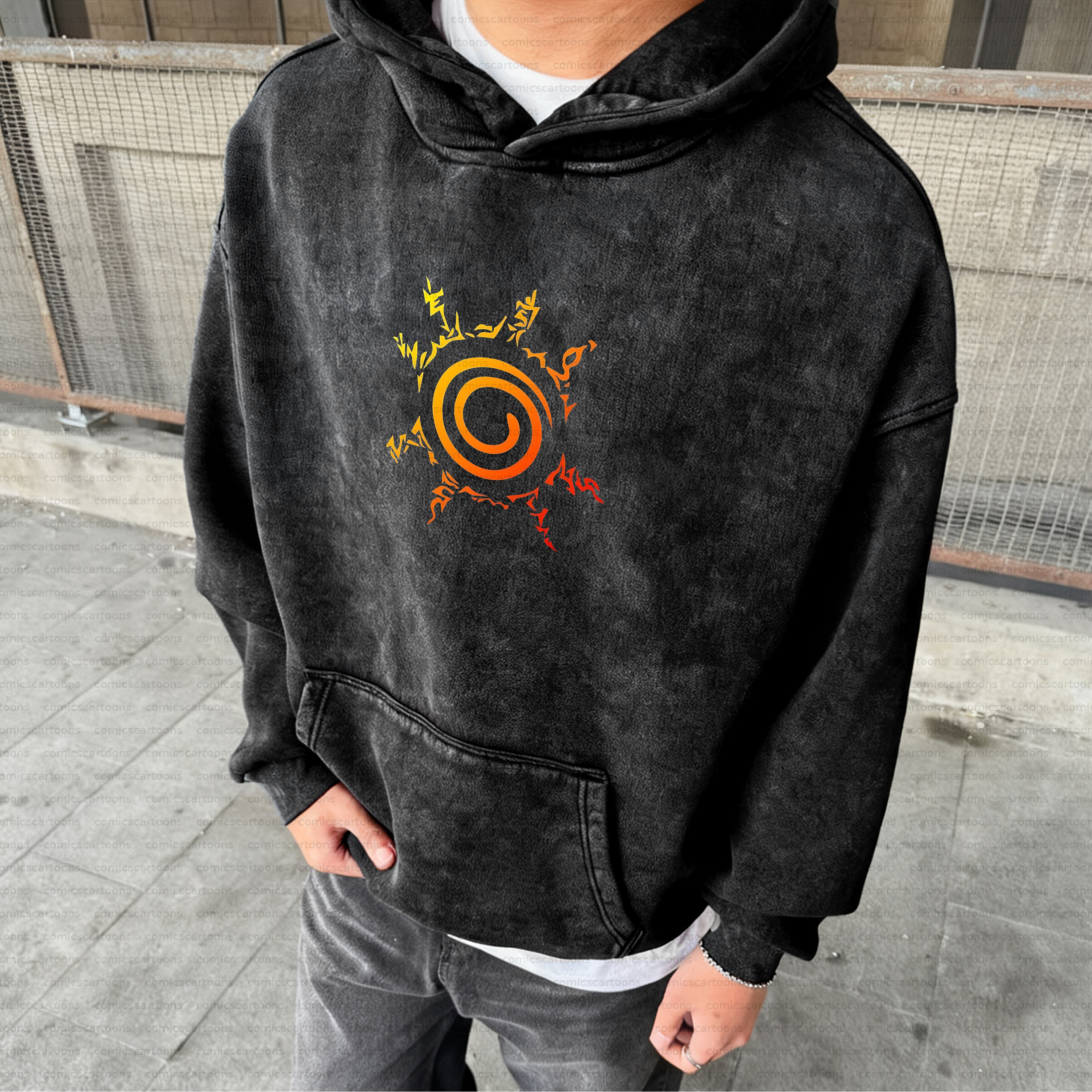 Unisex Anime Graphic Water wash Streetwear Vintage Hoodie