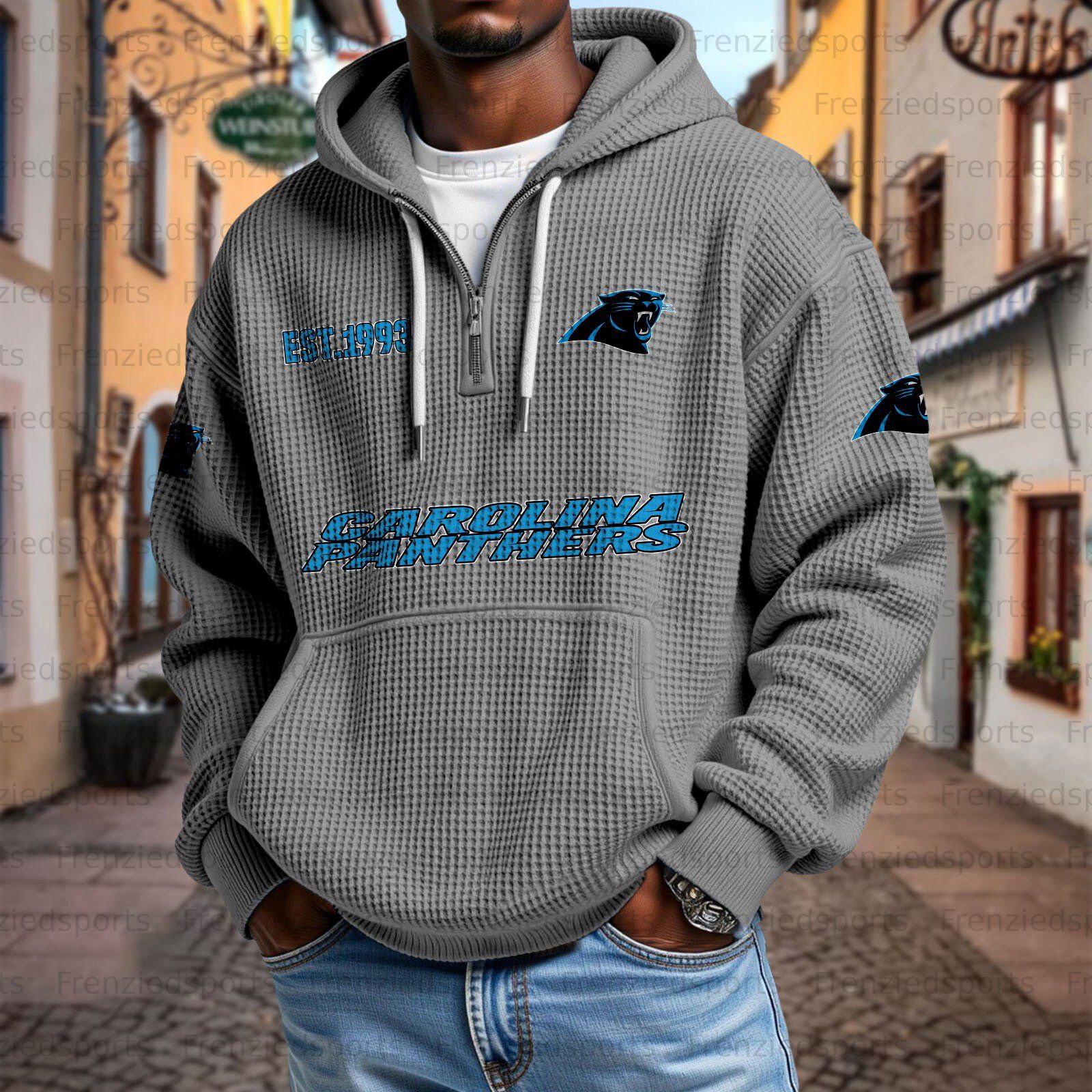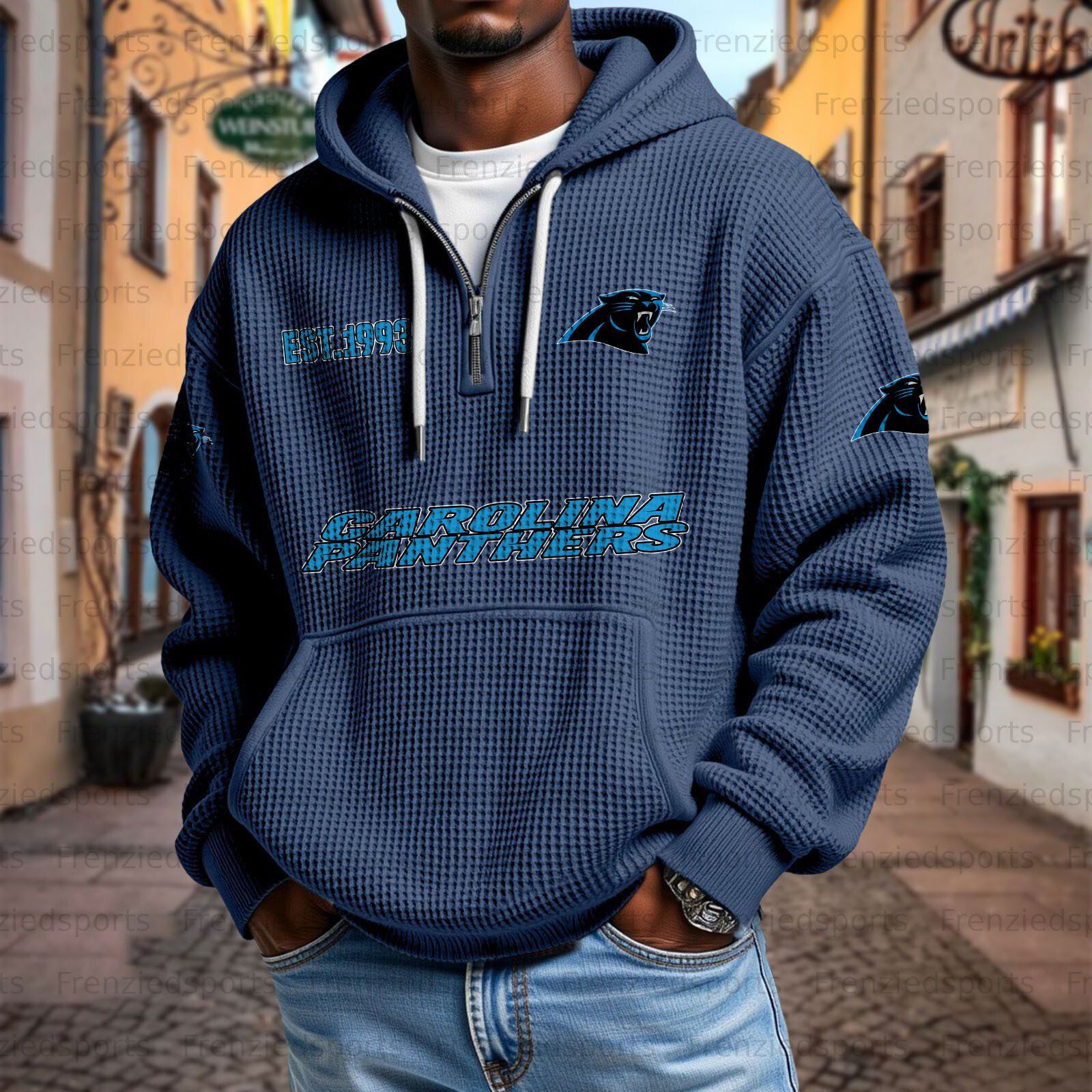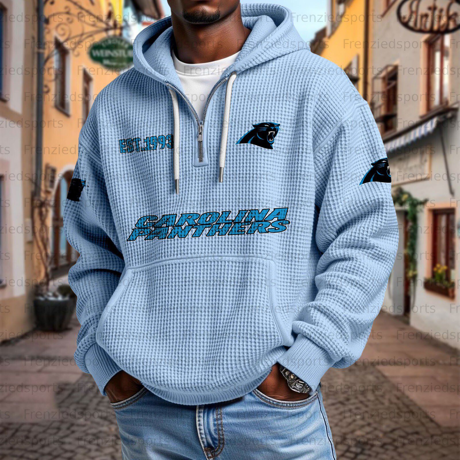 Unisex "Carolina Panthers" Graphic Streetwear Vintage Waffle Fabric hoodie
