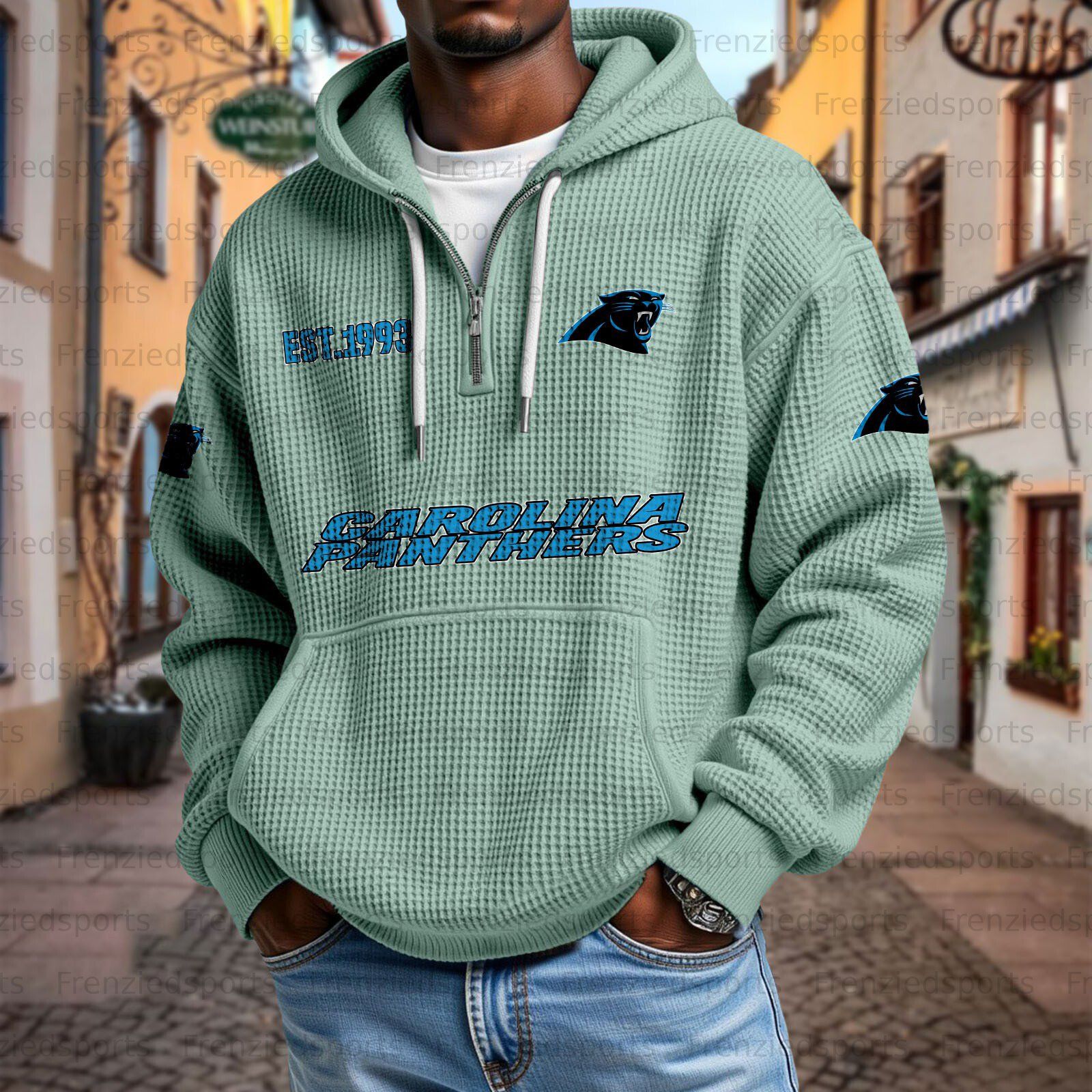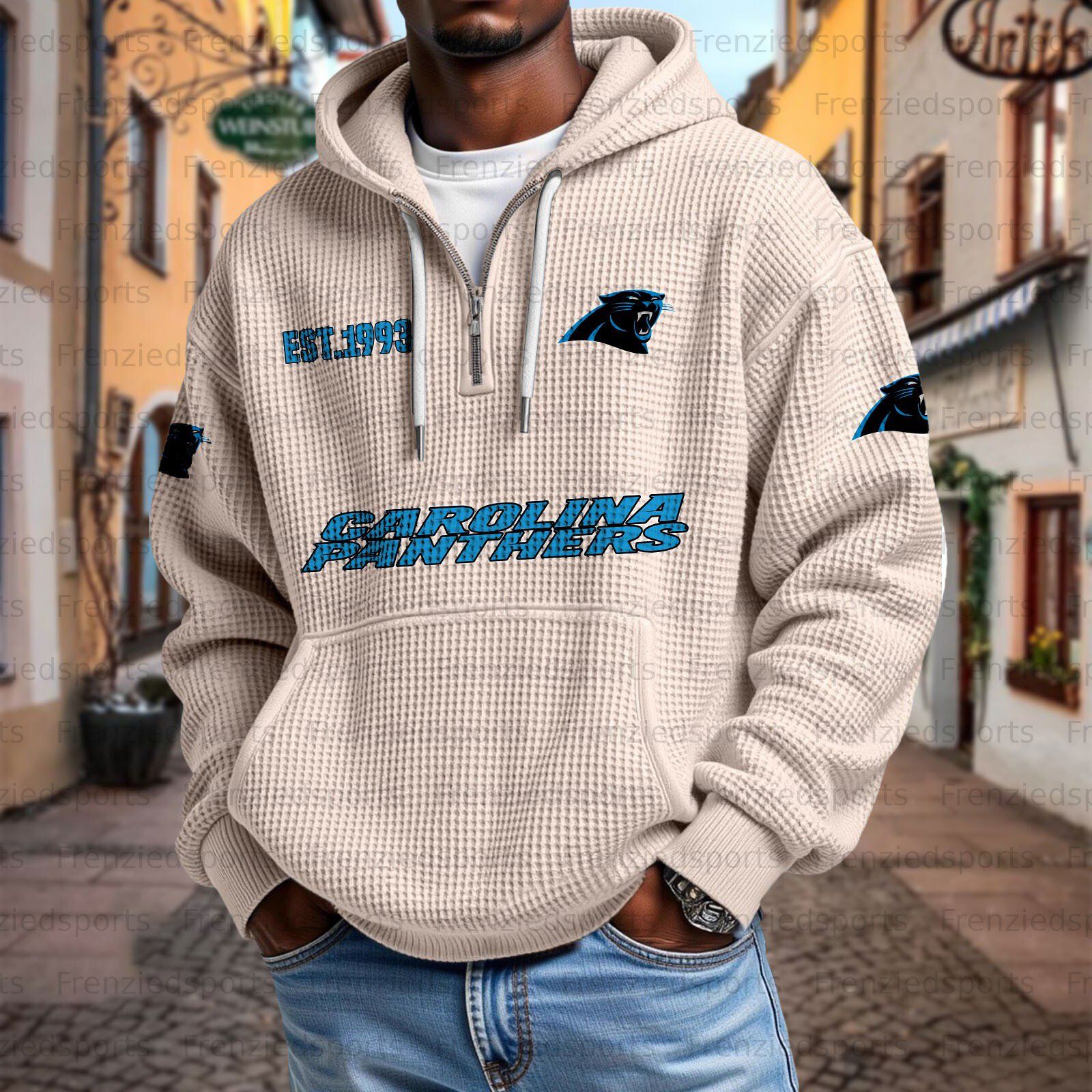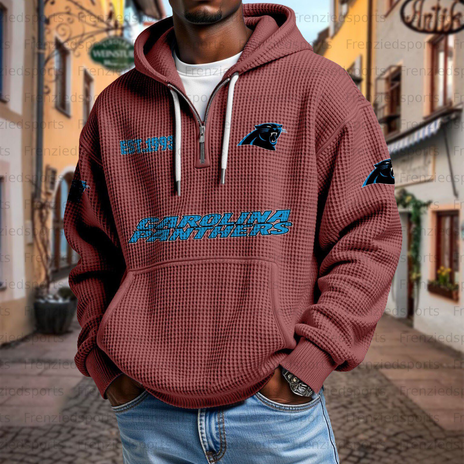 Unisex "Carolina Panthers" Graphic Streetwear Vintage Waffle Fabric hoodie