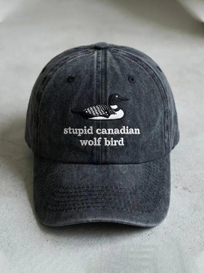 Unisex casual Stupid Canadian wolf bird washed cotton hat