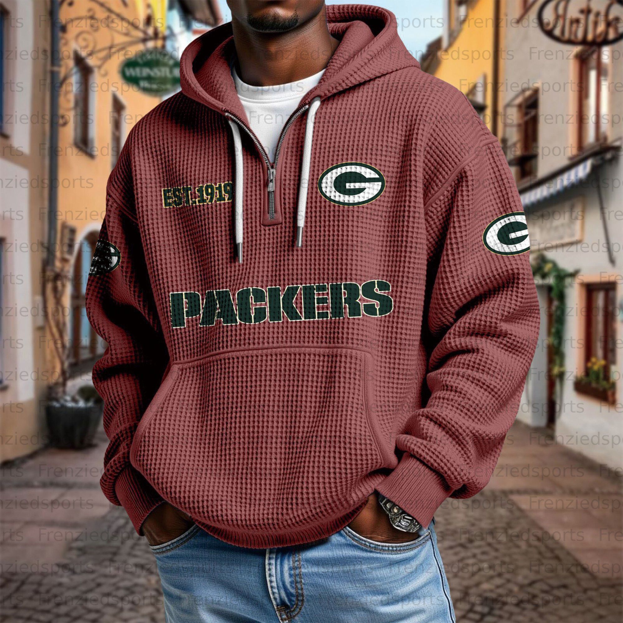 Unisex "Green Bay Packers" Graphic Streetwear Vintage Waffle Fabric hoodie