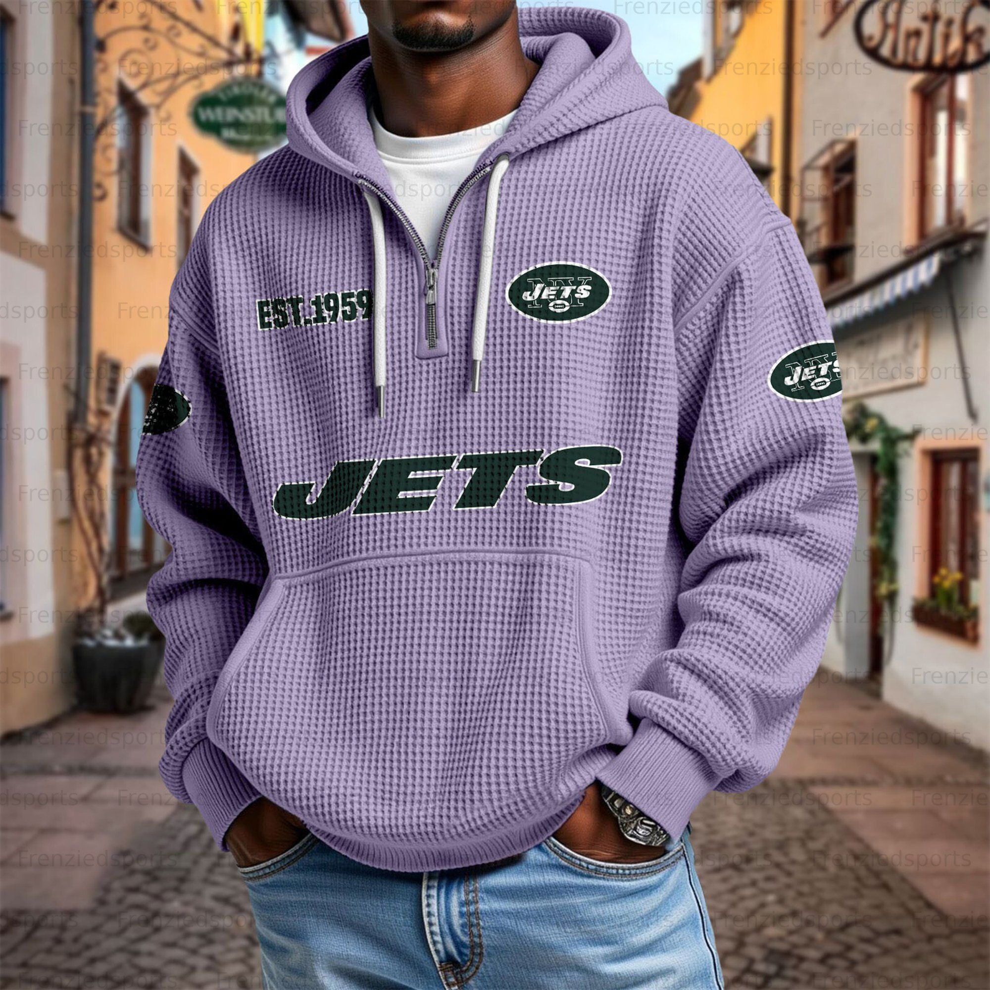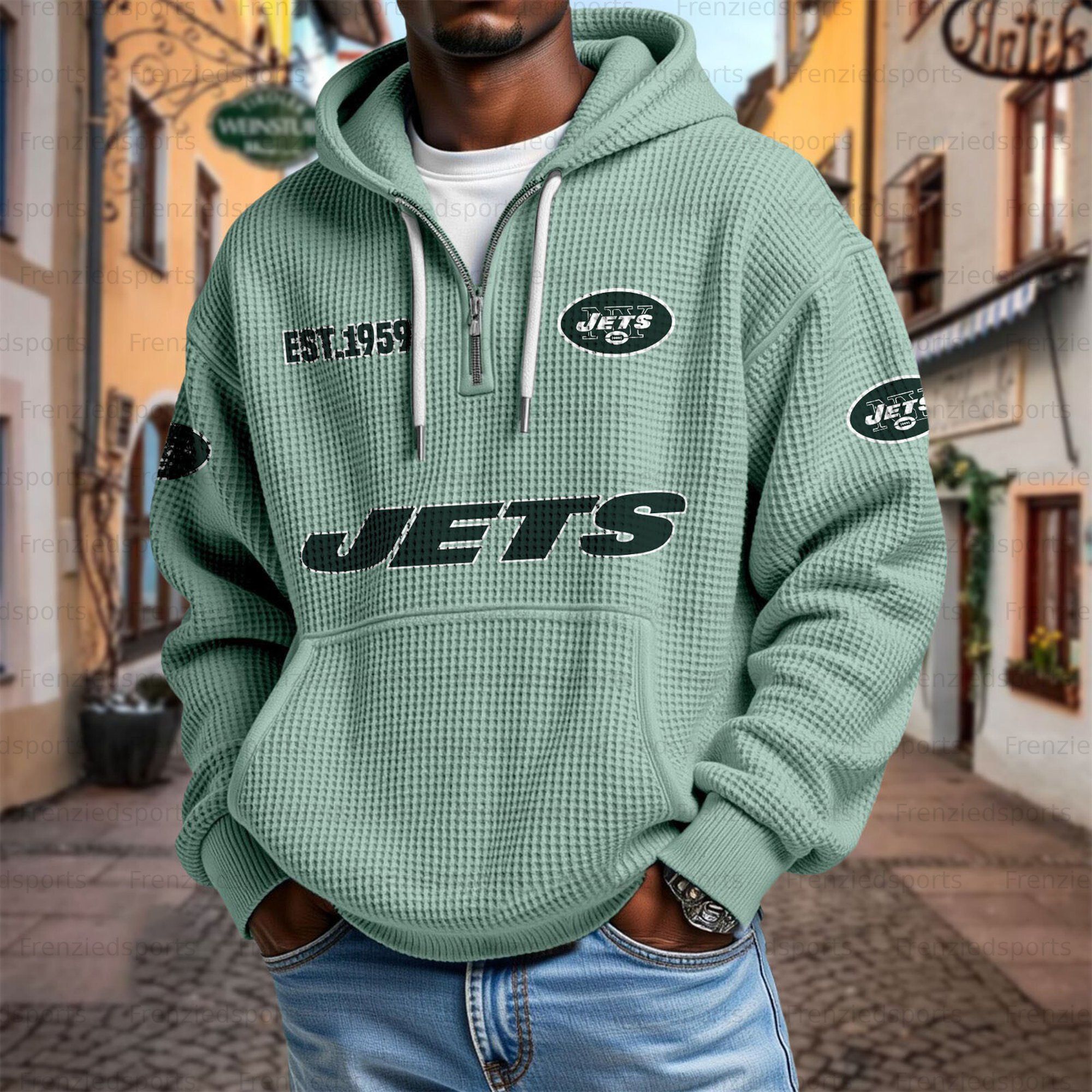 Unisex "New York Jets" Graphic Streetwear Vintage Waffle Fabric hoodie