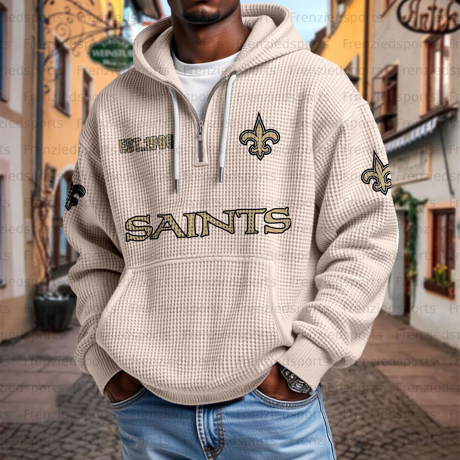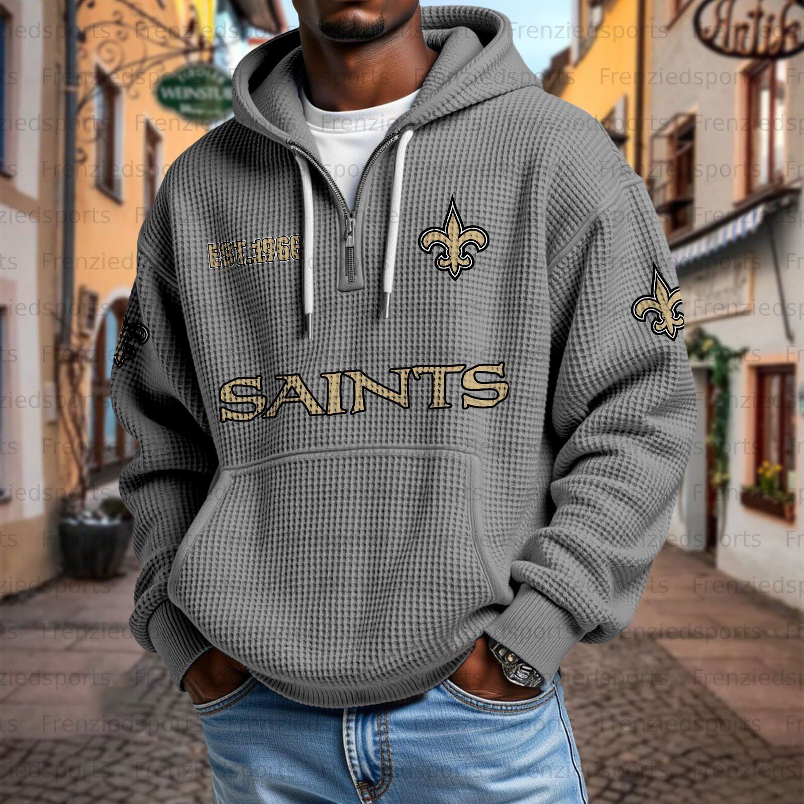 Unisex "New Orleans Saints " Graphic Streetwear Vintage Waffle Fabric hoodie