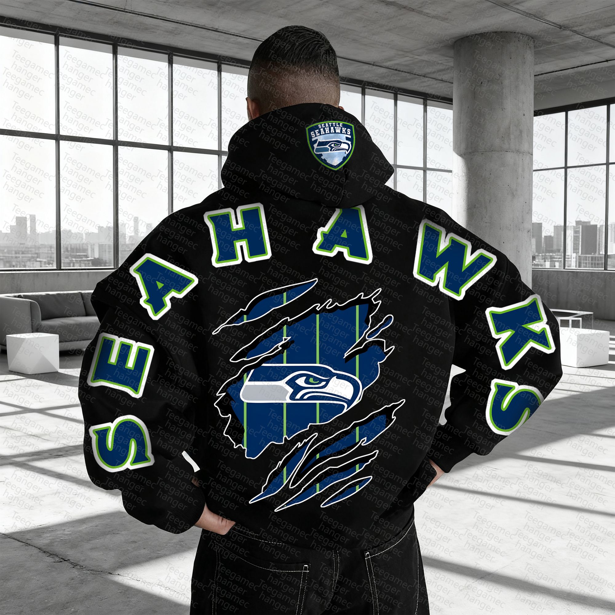 Unisex "Seattle Seahawks" Graphic Streetwear Vintage Plush Hoodie