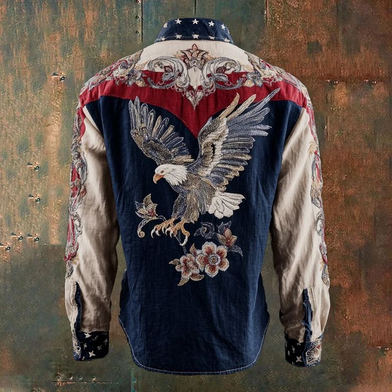US 250th Anniversary Flag Floral Print Long Sleeve Shirt