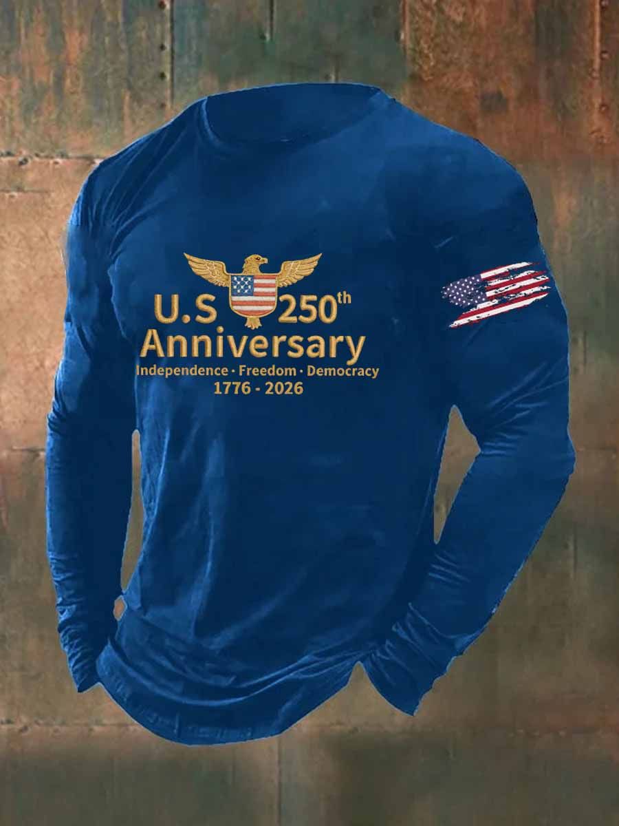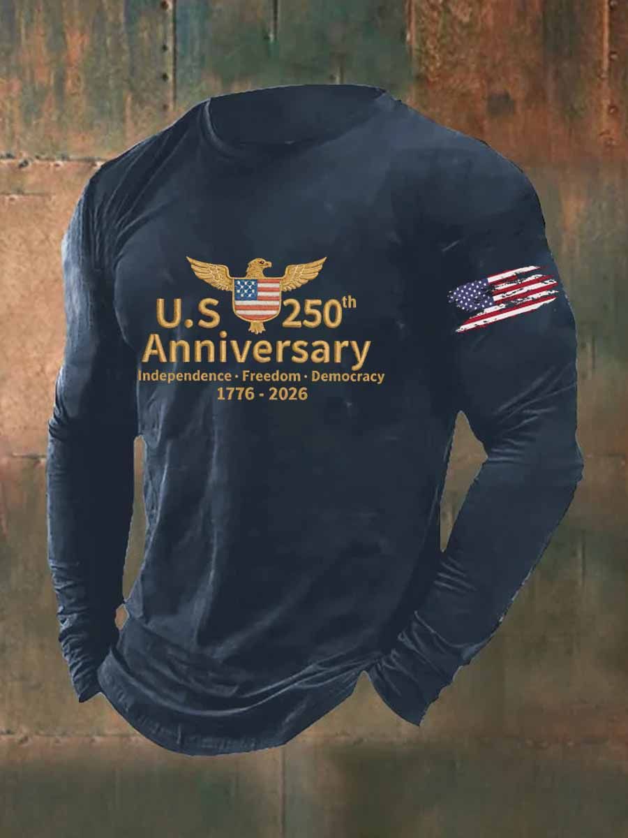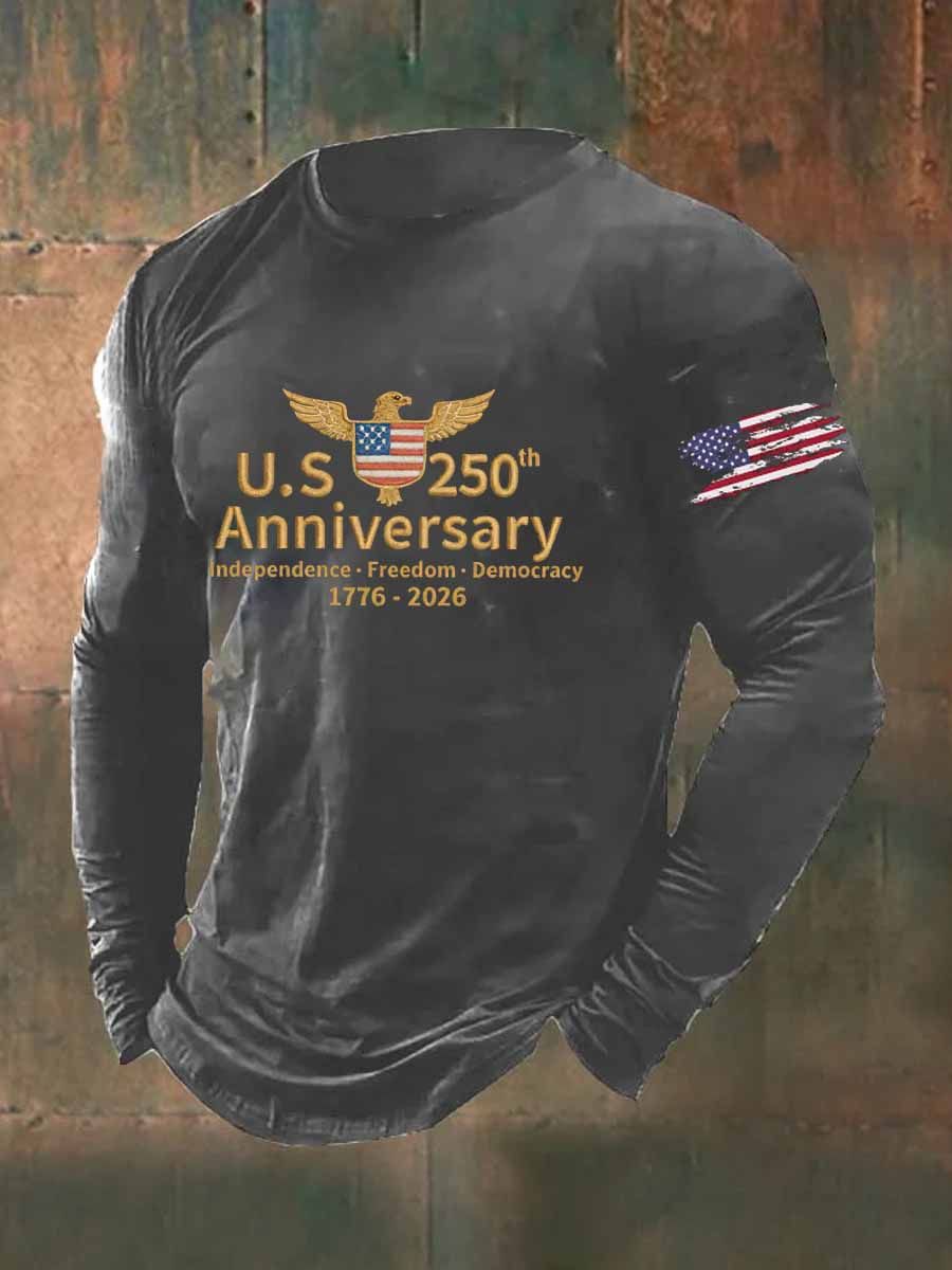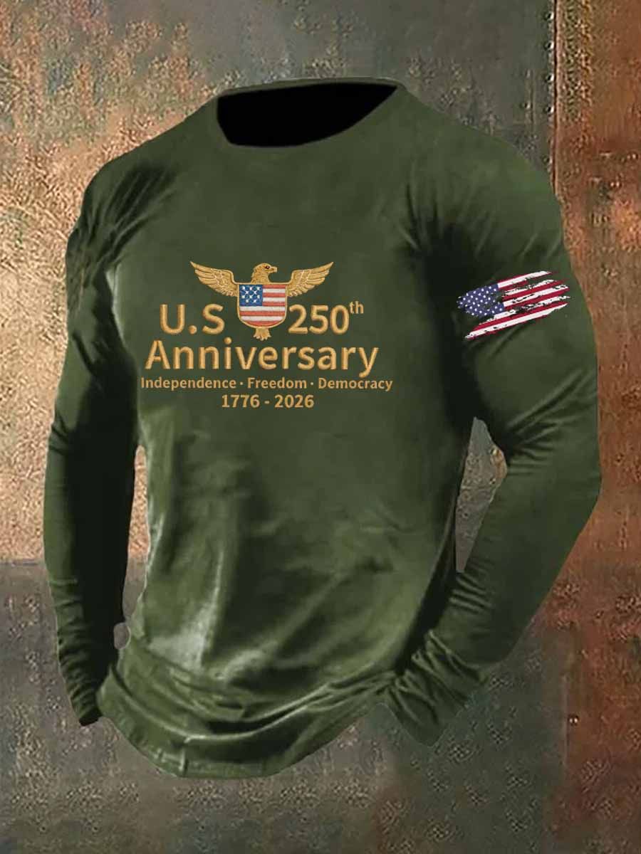 US 250th Anniversary Veterans Printed Long Sleeve Cotton T-Shirt
