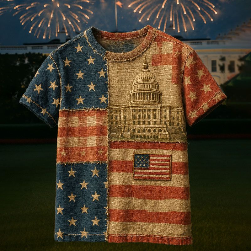 250th Anniversary of the United States commemorative print short-sleeved T-shirt
