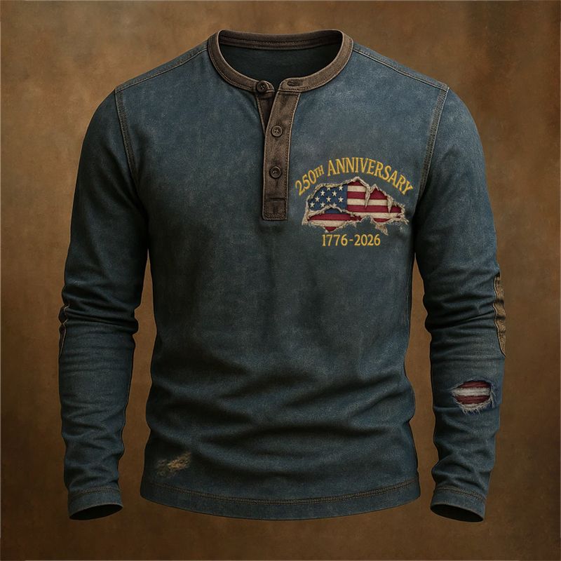 US Vintage 250th Anniversary Print Long Sleeve Henley