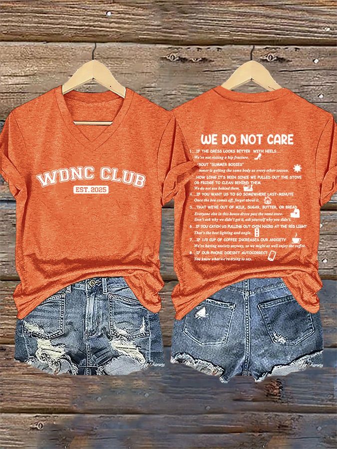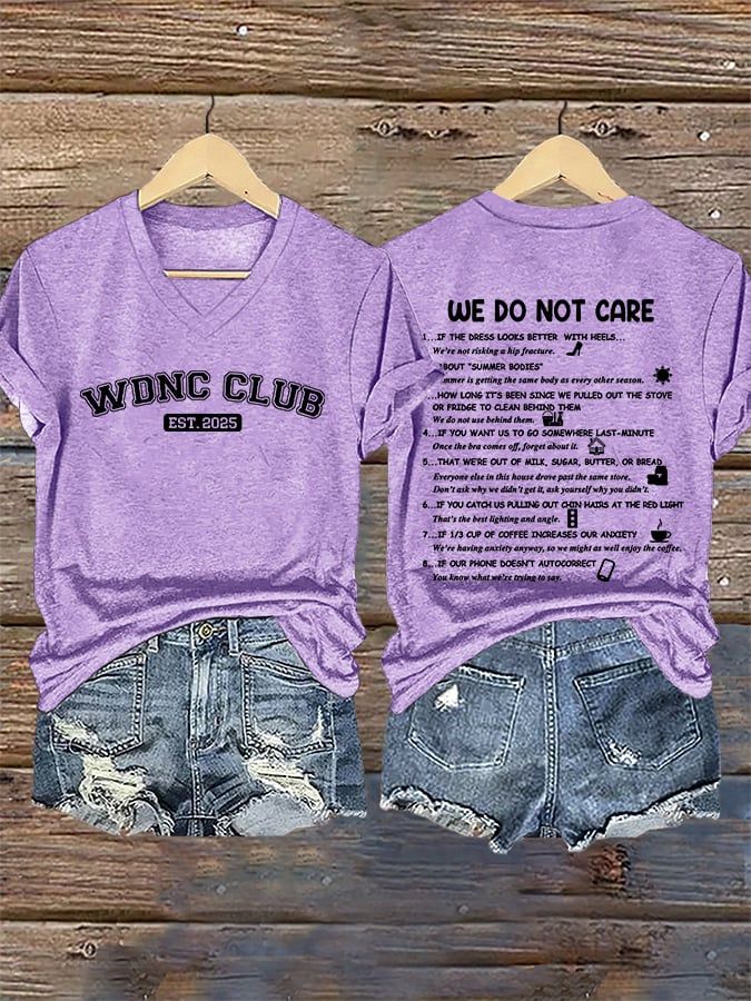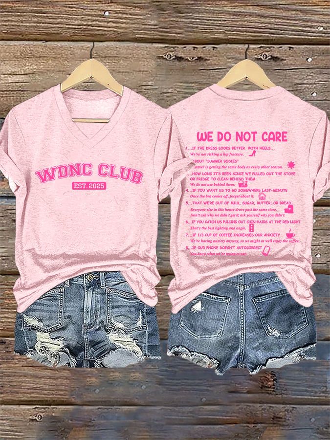 V-Neck Retro Funny Proud Member Of WDNC Club We Do Not Care Menopause Perimenopause Print T-Shirt