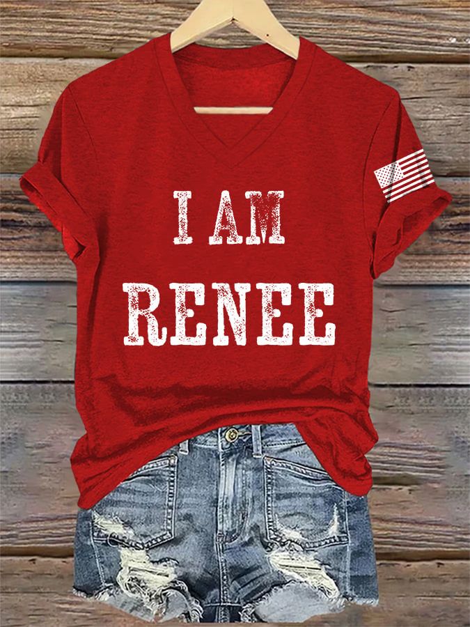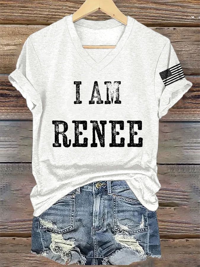 V-Neck Retro I Am Renee Print T-Shirt