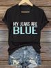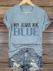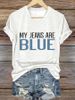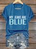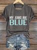 V-Neck Retro My Jeans Are Blue Print T-Shirt
