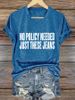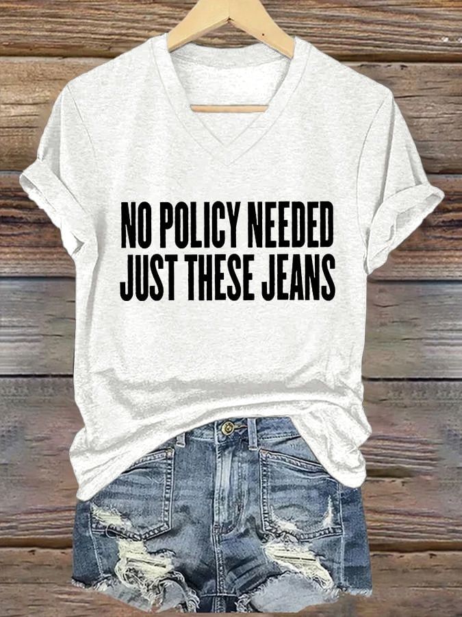 V-Neck Retro No Policy Needed Just These Jeans Print T-Shirt