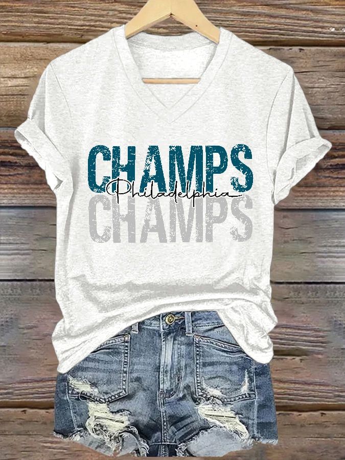 V-Neck Retro Philadelphia Champs Print T-Shirt