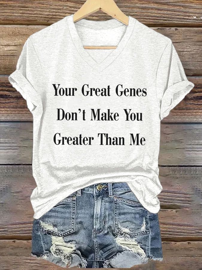 V-Neck Retro Your Great Genes Don’t Make You Greater Than Me Print T-Shirt