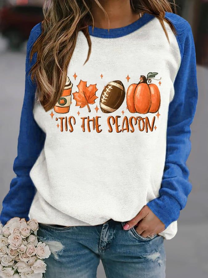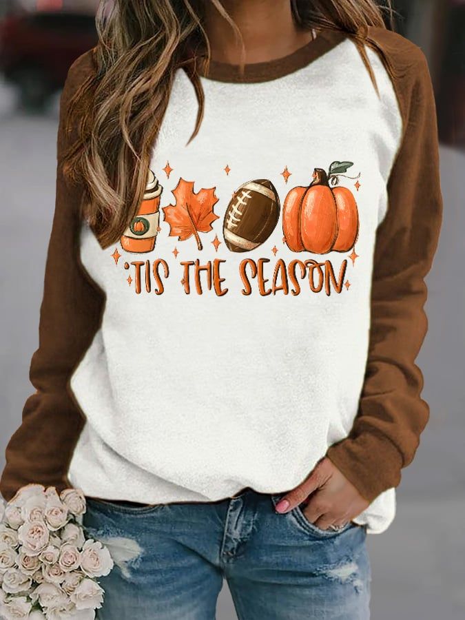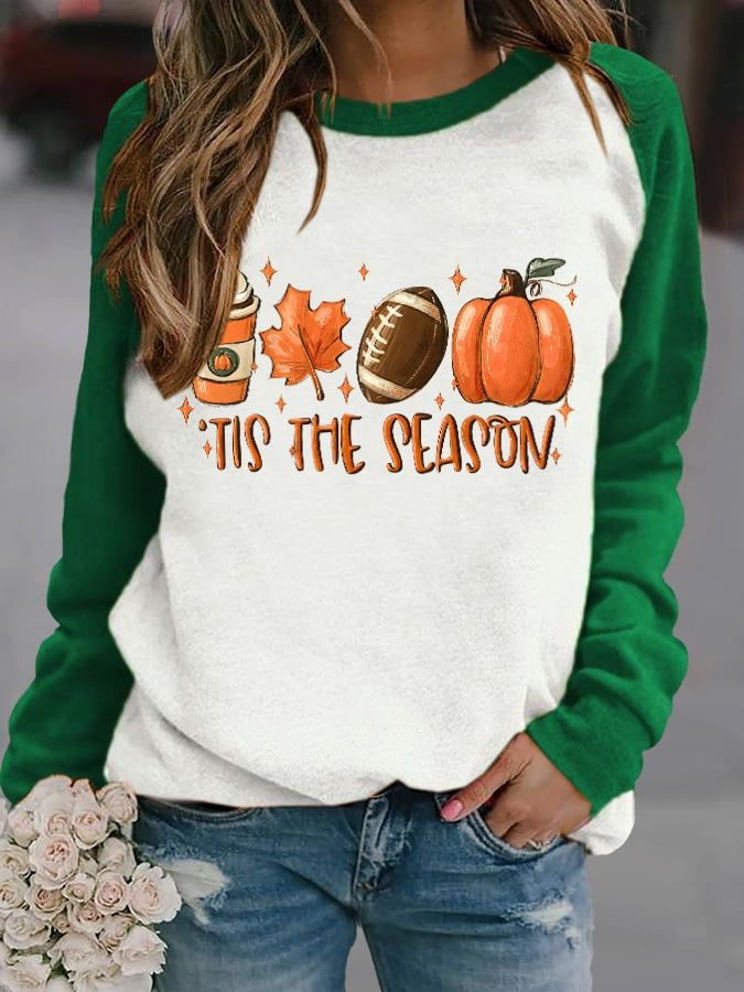 Vintage Football Tis The Season Pumpkin Maple Leaf Print Sweatshirt
