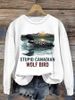 Men's Stupid Canadian wolf bird Print Long-Sleeved T-Shirt