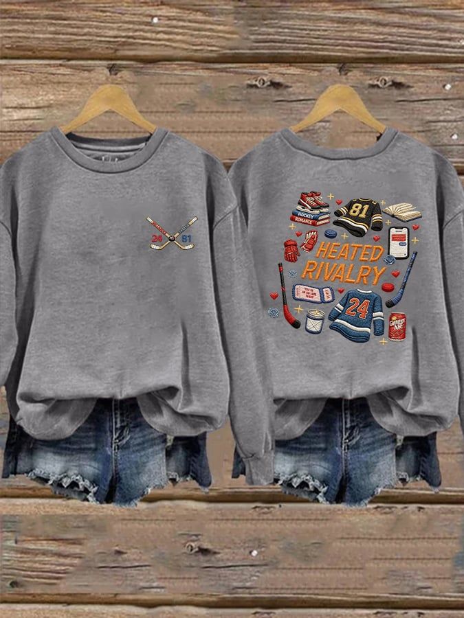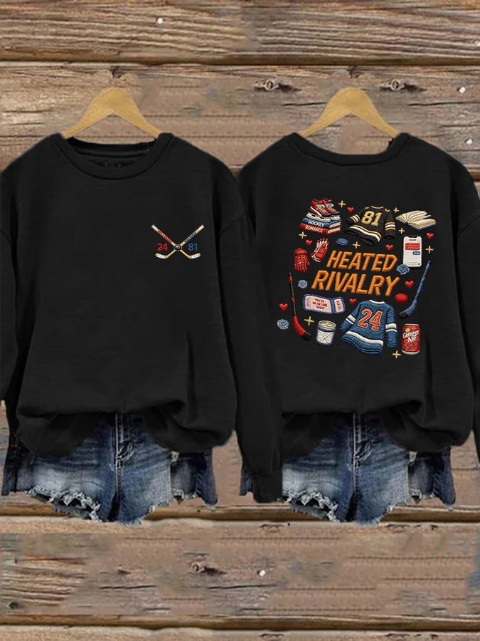 Women's Hockey Romance Print Long-Sleeved Sweatshirt