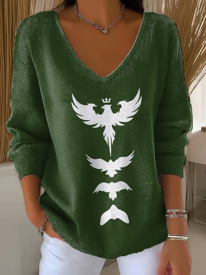 Women'S Casual Rugby Creative Print Long Sleeve T-Shirt